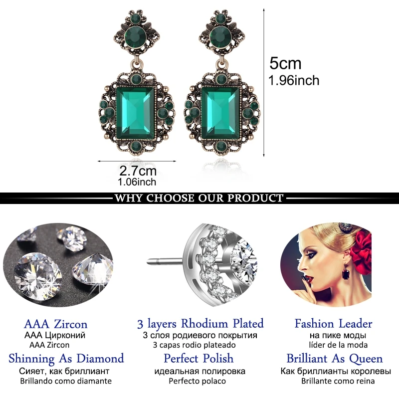 LXOEN Vintage Ethnic Green Stone Drop Earrings for women NSE692