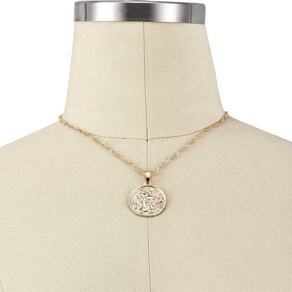 MAA-OE Bohemia Portrait Alloy Gold Coin Pendant Necklaces For Women Vintage Rose Fashion Long Necklace 2019 Jewelry Gifts
