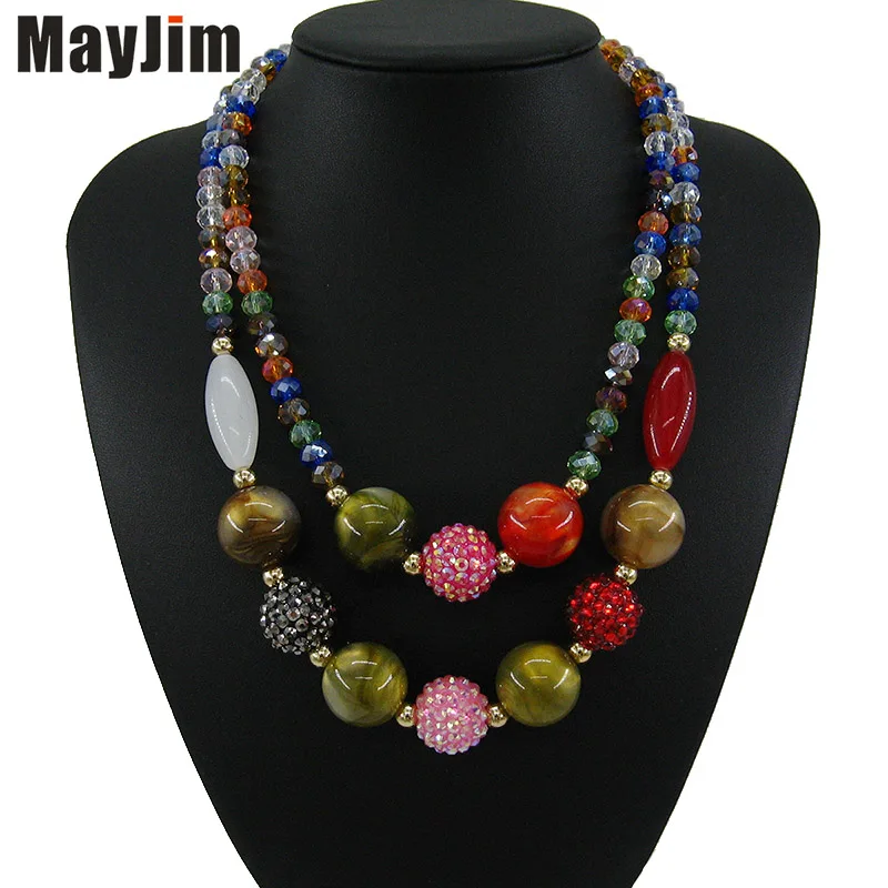 17KM Fashion Gold Color Crystal Cross Necklaces Pendants Bohemian Double Layered Necklace Catholic Religious Christian Jewelry
