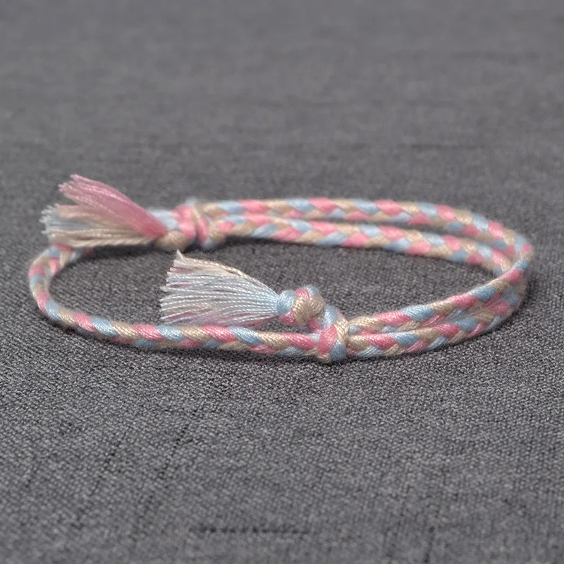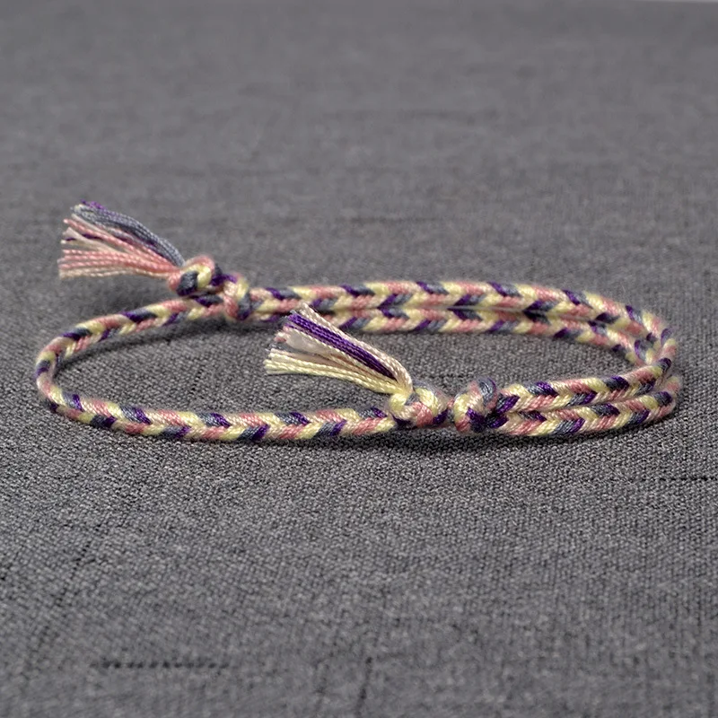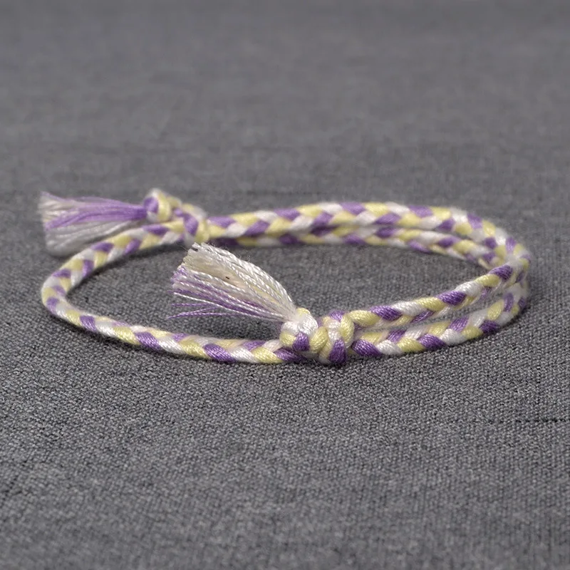 Meetvii Simple Woven Cotton Rope String Bracelet Pray Yoga Handmade Pure Color Chic Tassel Bracelet for Men Women 2020 New