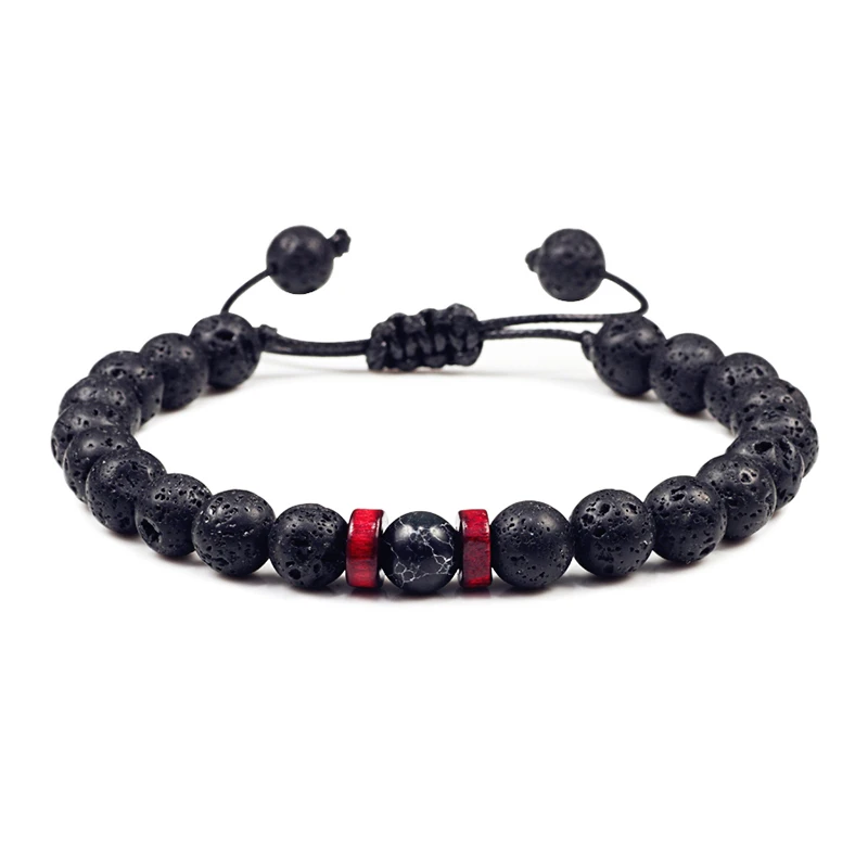 Men Bracelet Natural Black Onyx Stone Bead Tibetan Buddha Bracelet Chakra Lava Stone Diffuser Bracelets Men Jewelry Dropshipping Lover Gift