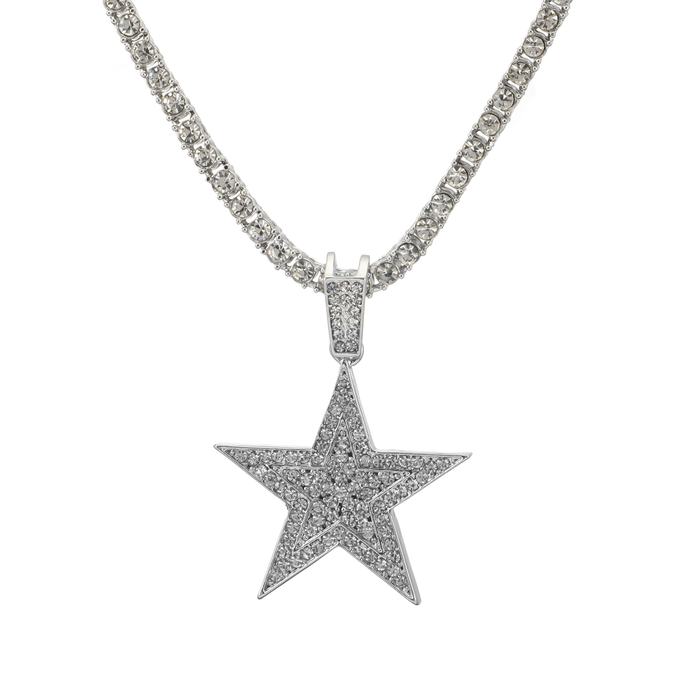 Men Hip hop Iced Out Bling five-pointed star Pendant Necklaces Pave Setting Zircon Fashion Charm Gold Color Necklace