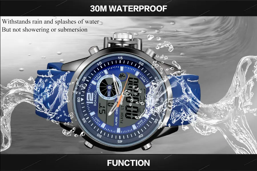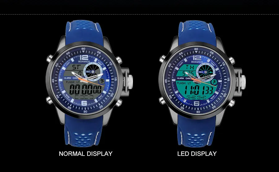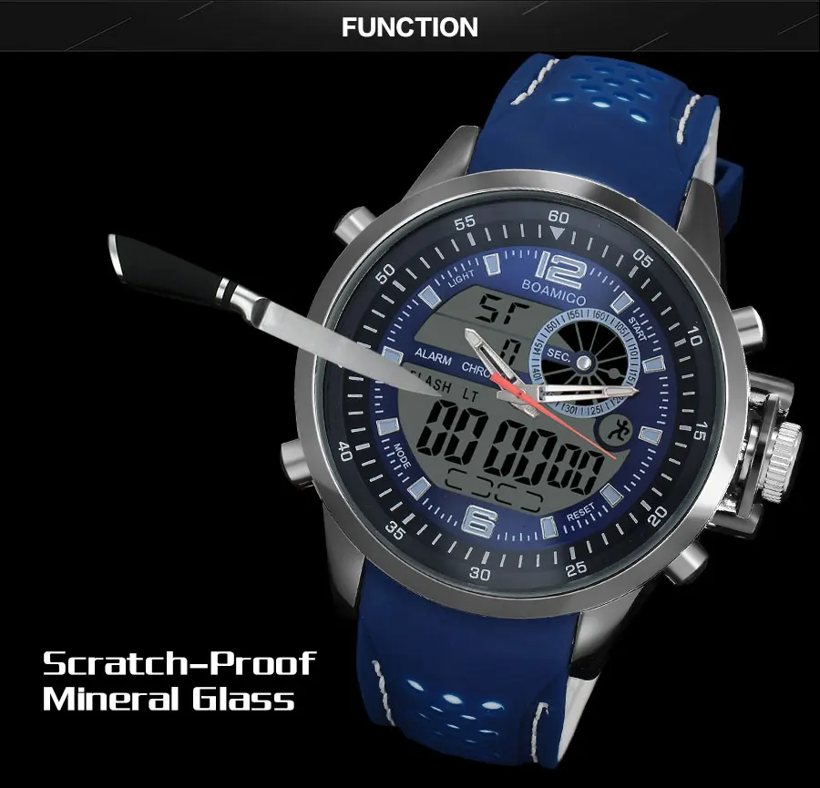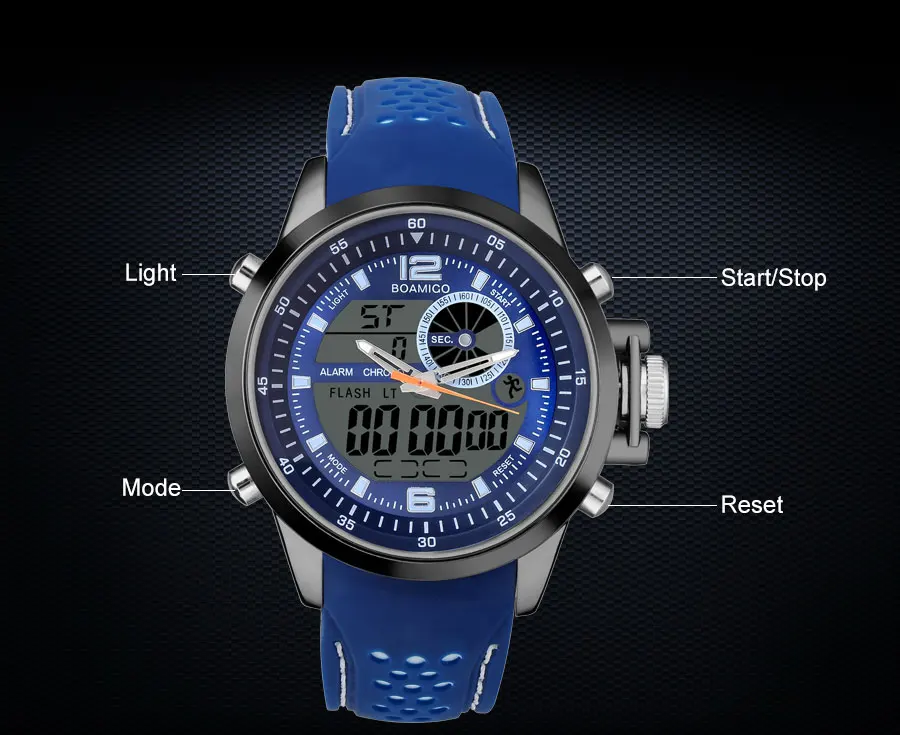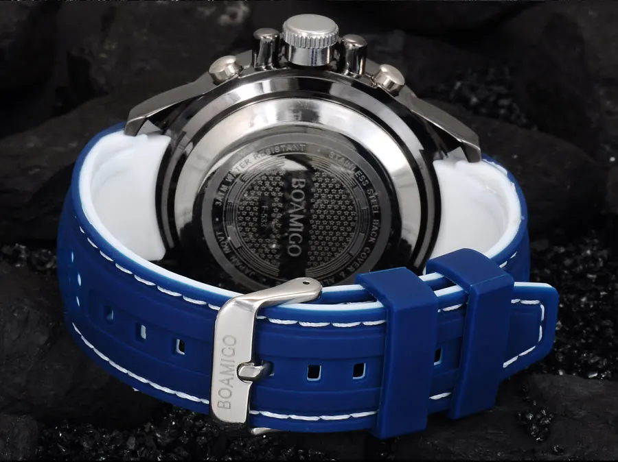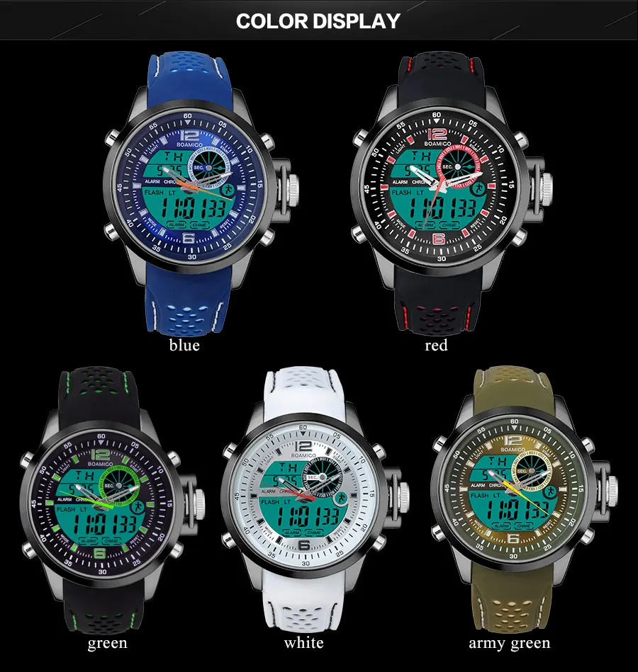 Men Sports Watch Military Quartz Watch Rubber Band BOAMIGO Brand Blue LED Analog Digital Wristwatch 30M Waterproof Reloj Hombre