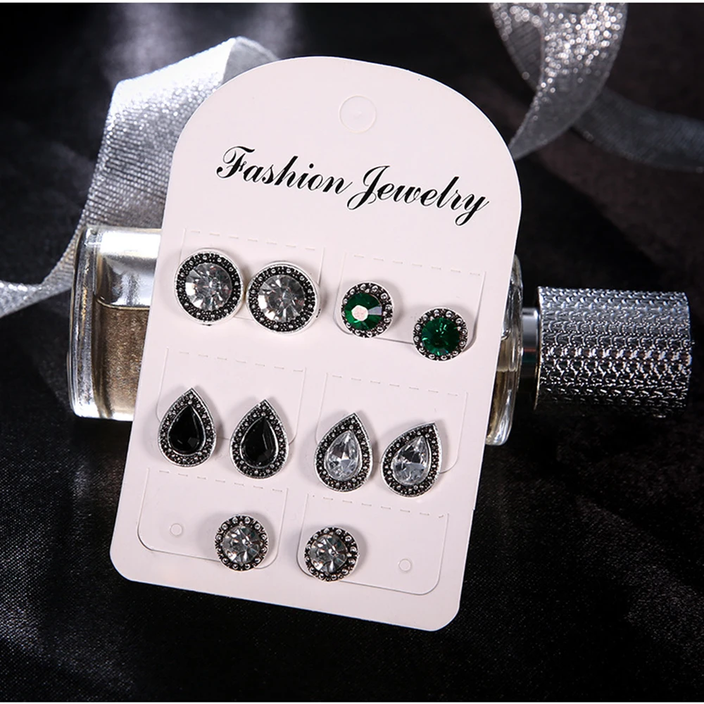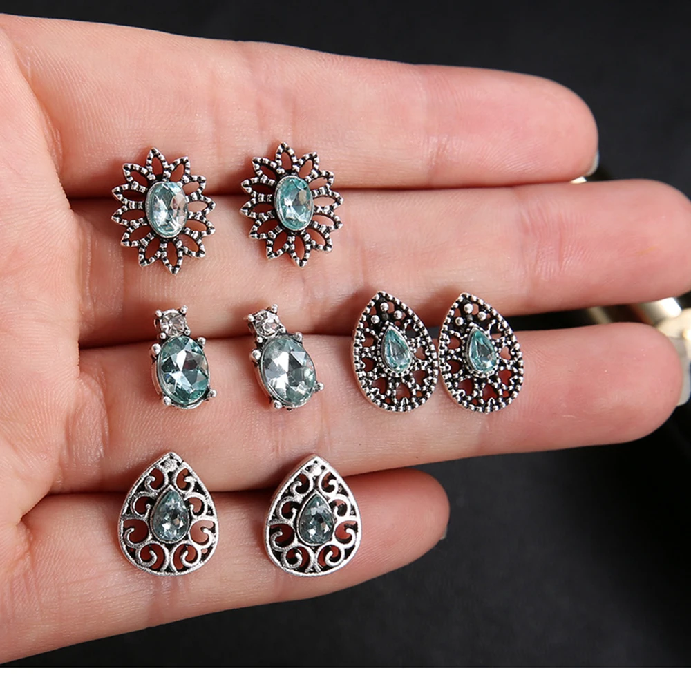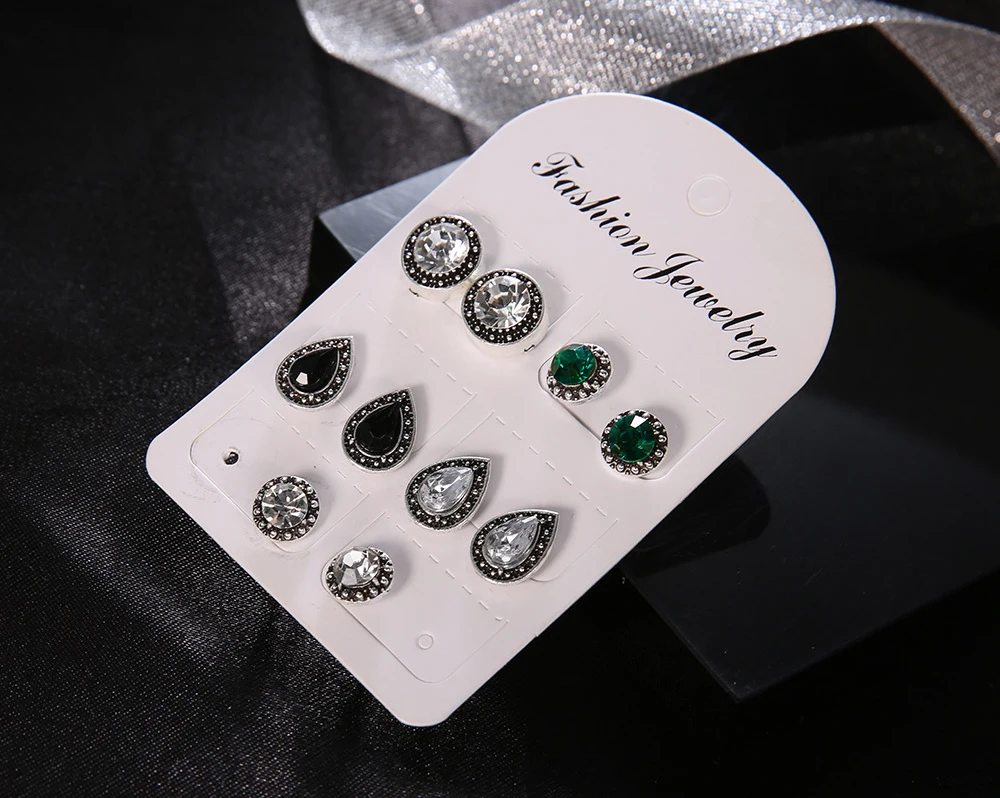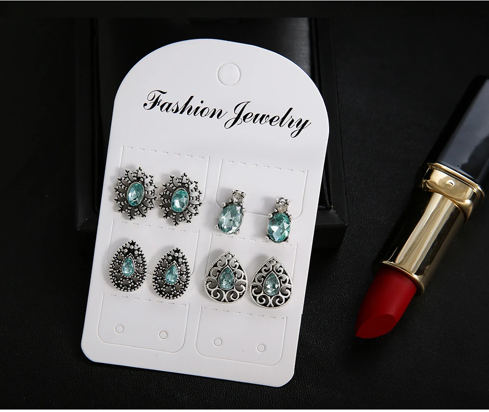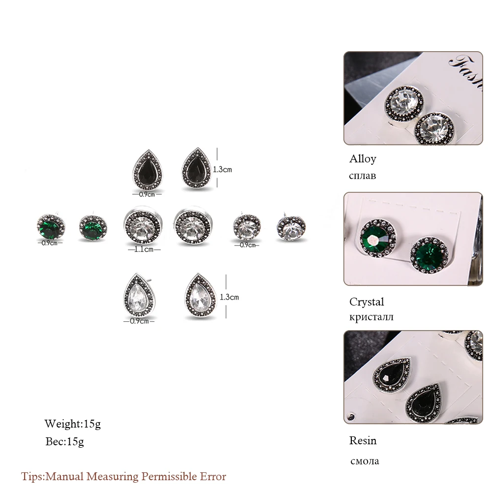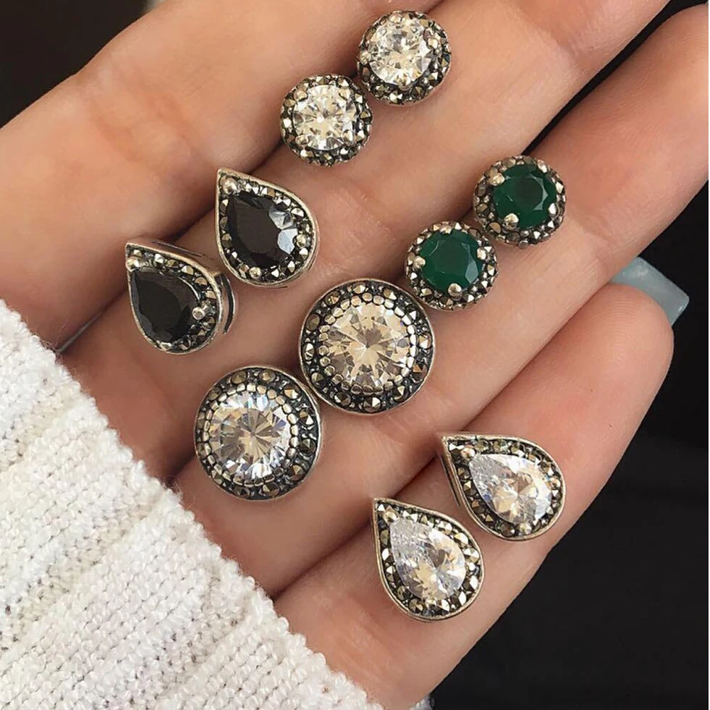 Meyfflin Women Crystal Earrings for Women Boucle D’oreille Jewelry Bohemian Stud Earring Set Green Droplets Brincos 5 Pairs