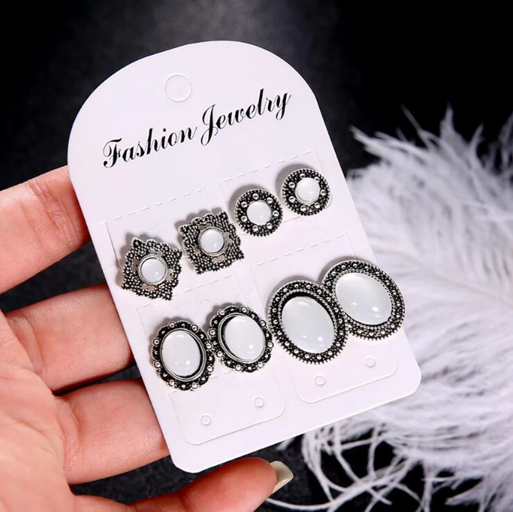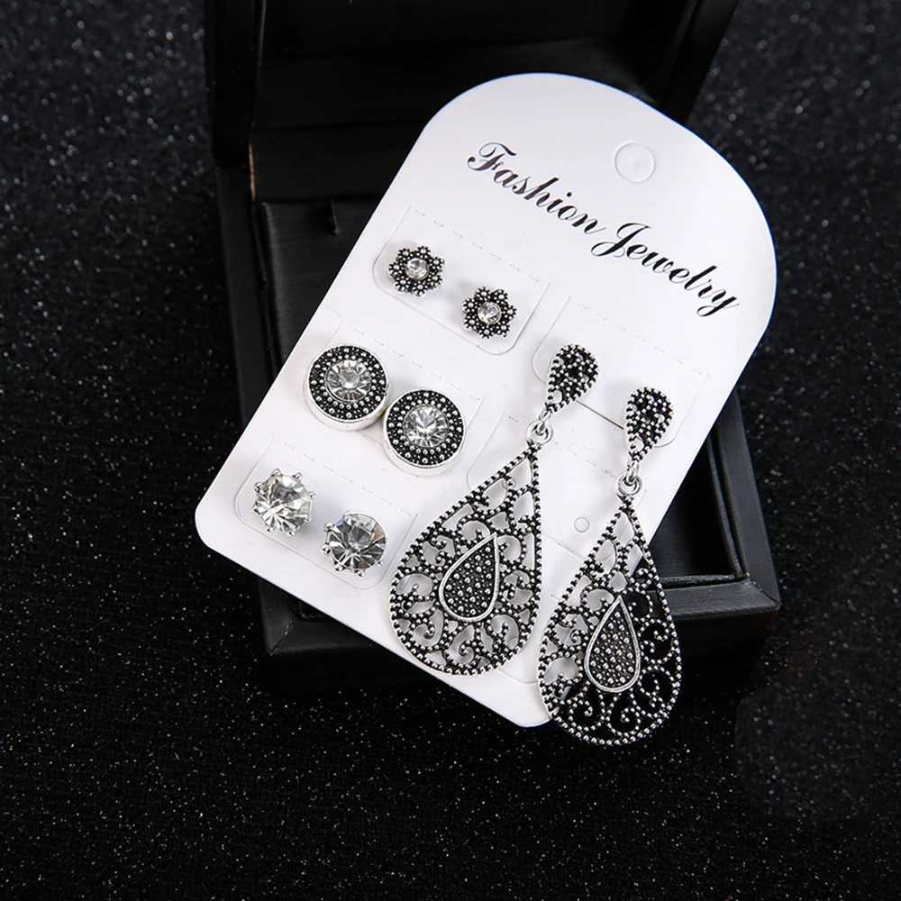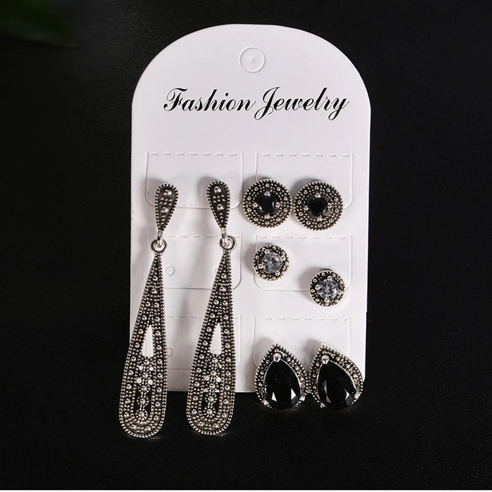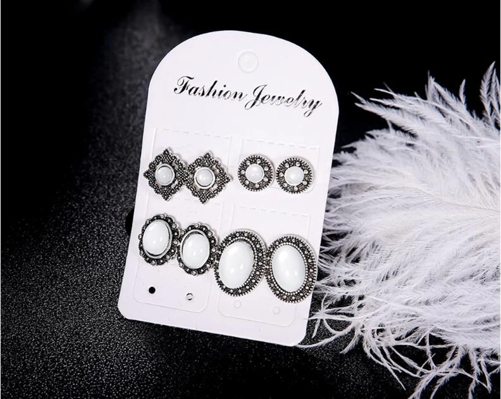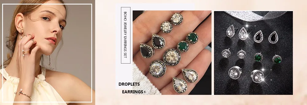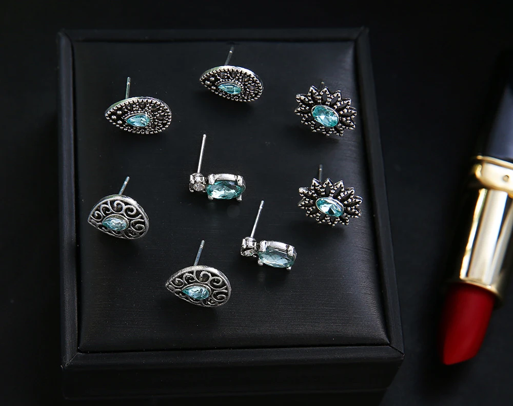 Meyfflin Women Crystal Earrings for Women Boucle D’oreille Jewelry Bohemian Stud Earring Set Green Droplets Brincos 5 Pairs