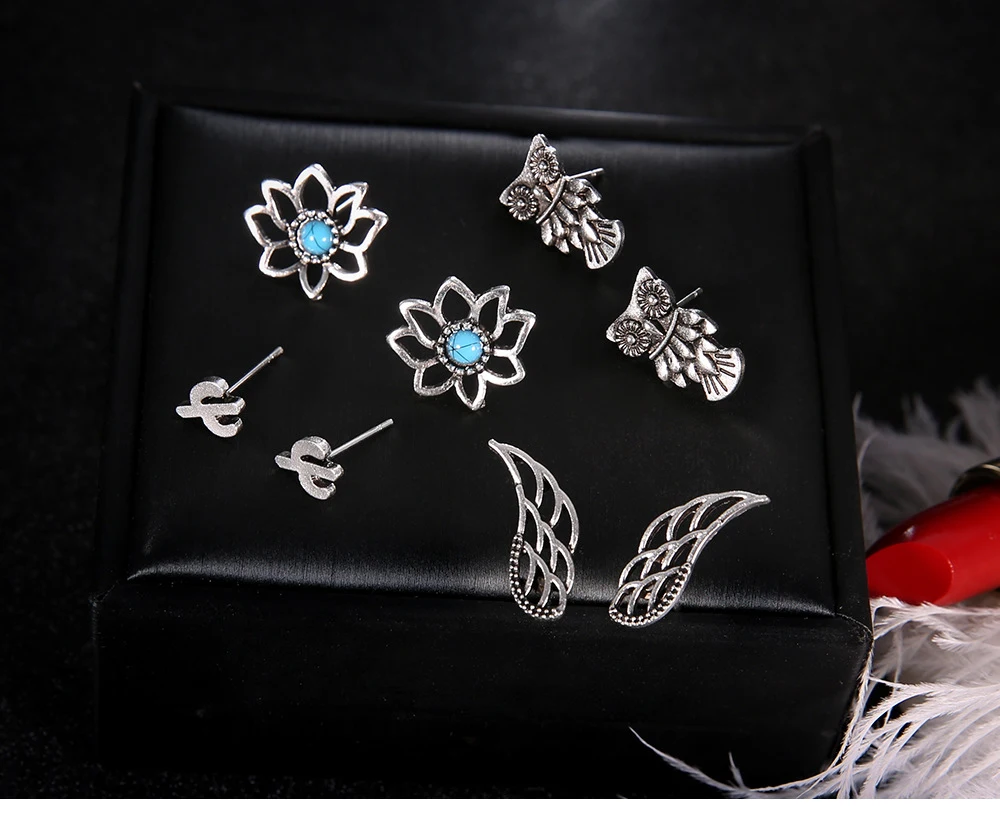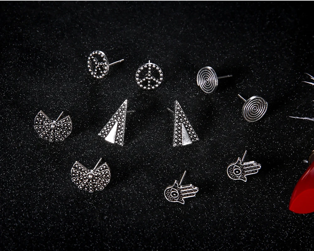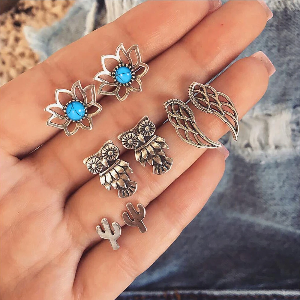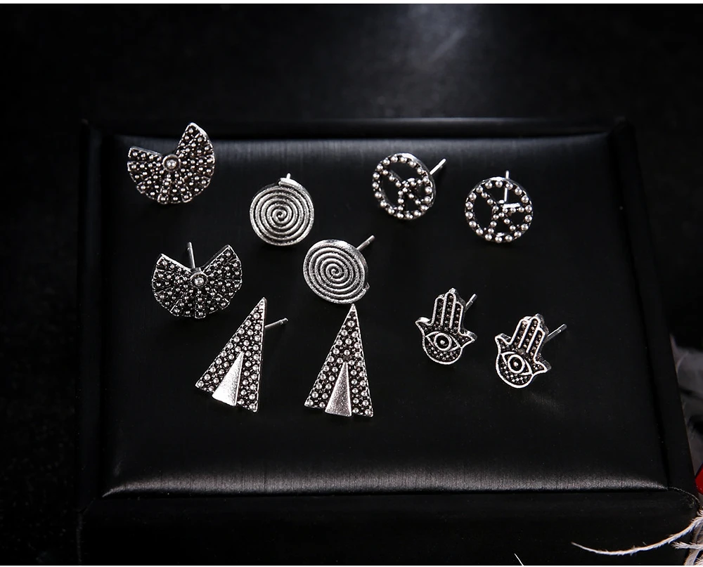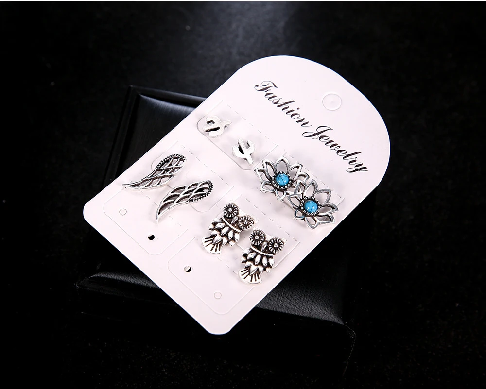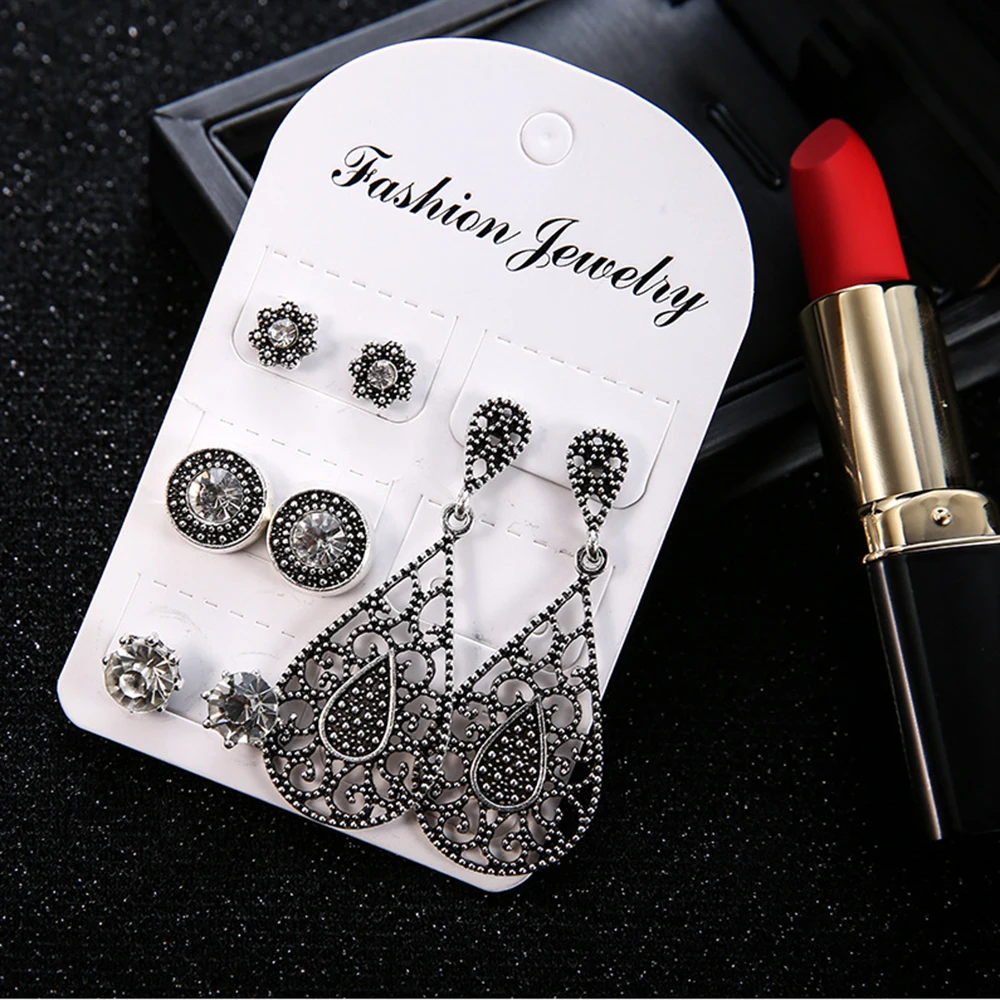 Meyfflin Women Crystal Earrings for Women Boucle D’oreille Jewelry Bohemian Stud Earring Set Green Droplets Brincos 5 Pairs