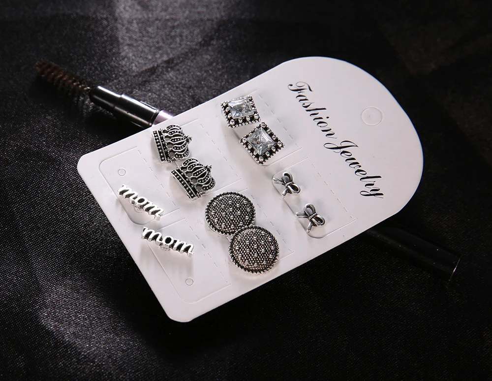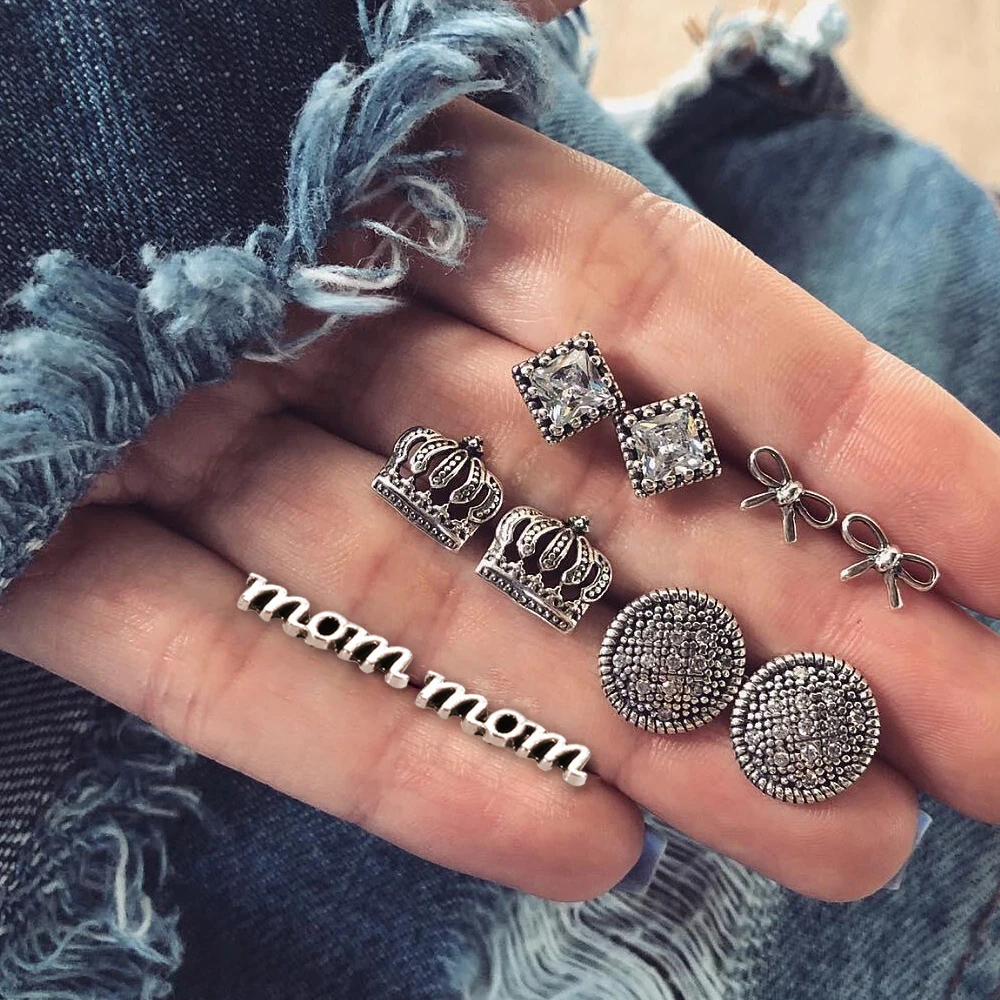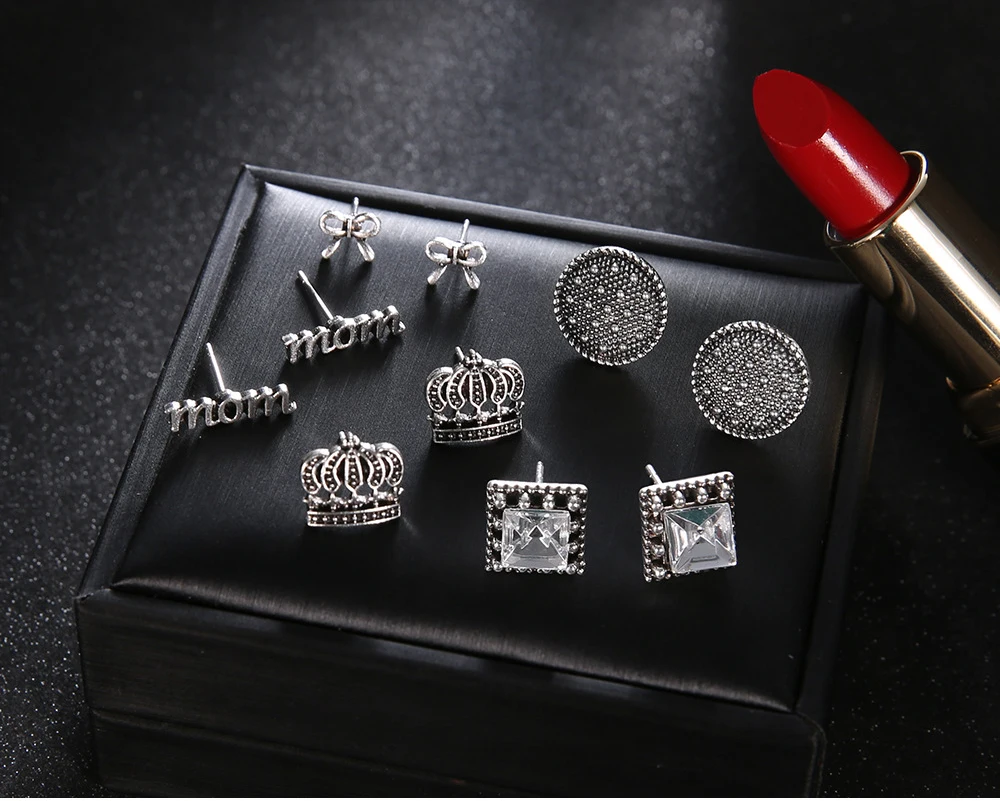 17KM Fashion Cubic Zirconia Stud Earrings Set For Woman Simple Round Silver Color Earring Statement Party Jewelry Gifts 12 Pairs