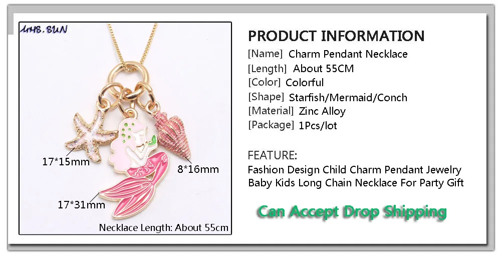 MHS.SUN fashion cartoon diy kids chain necklace girls lovely mermaid pendant necklace for kids best friend gift starfish jewelry