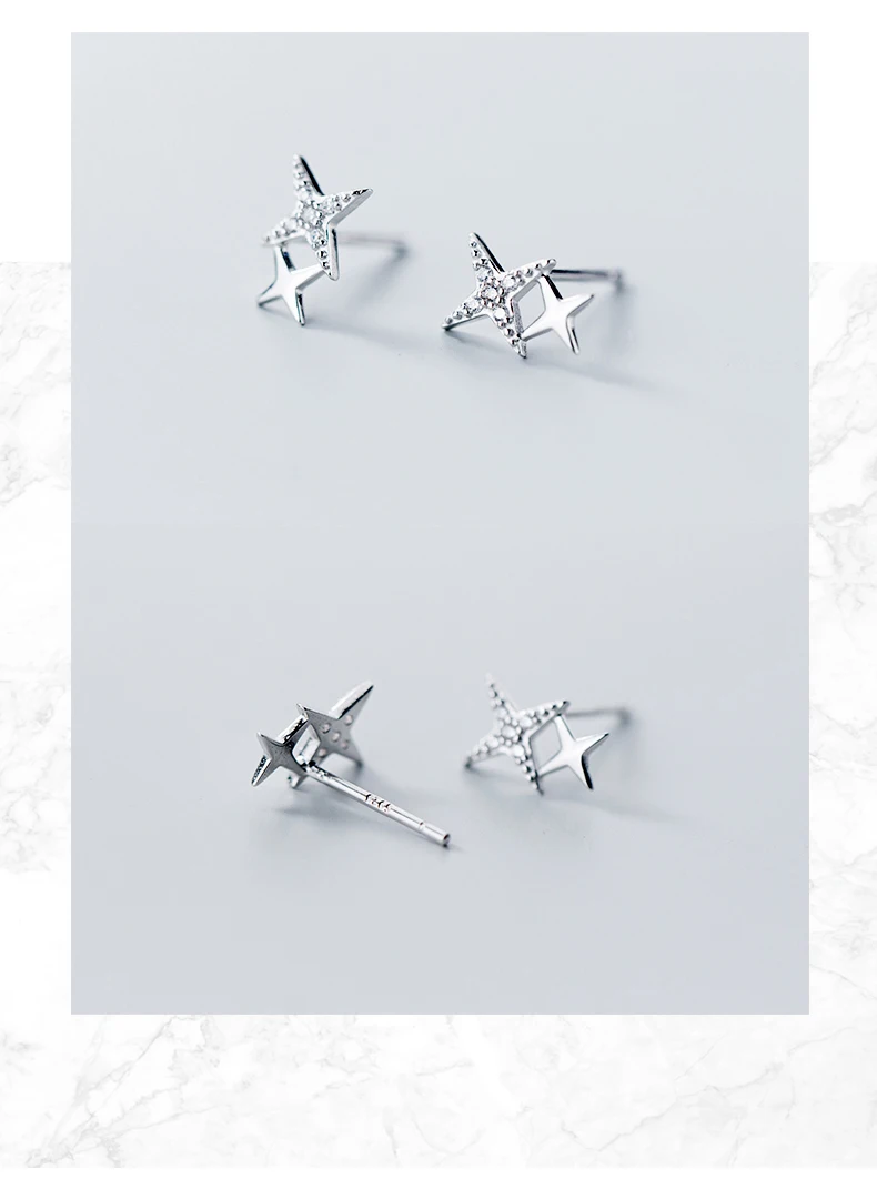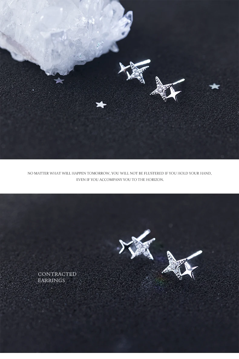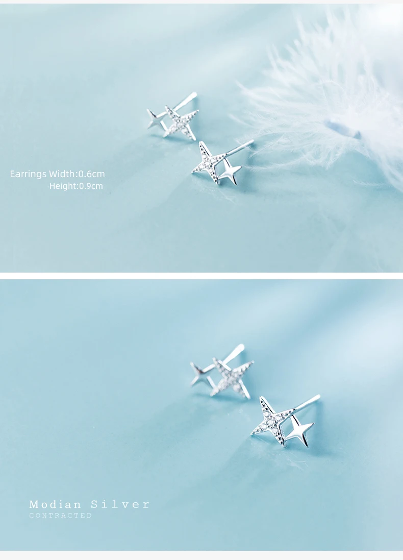 Modian Luxury Clear CZ Sparkling Stars Cute Galaxy Stud Earrings Fashion Female Real 925 Sterling Silver Jewelry For Women Gift