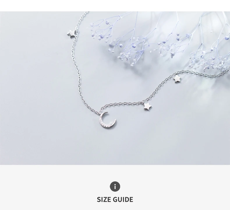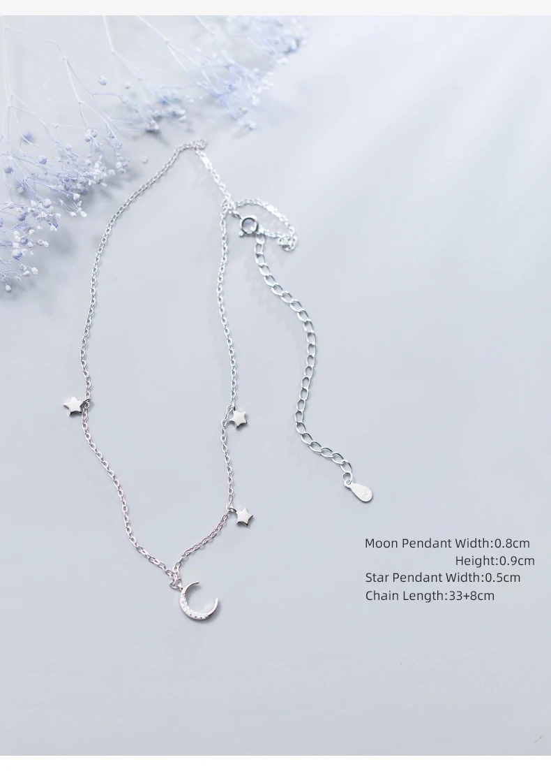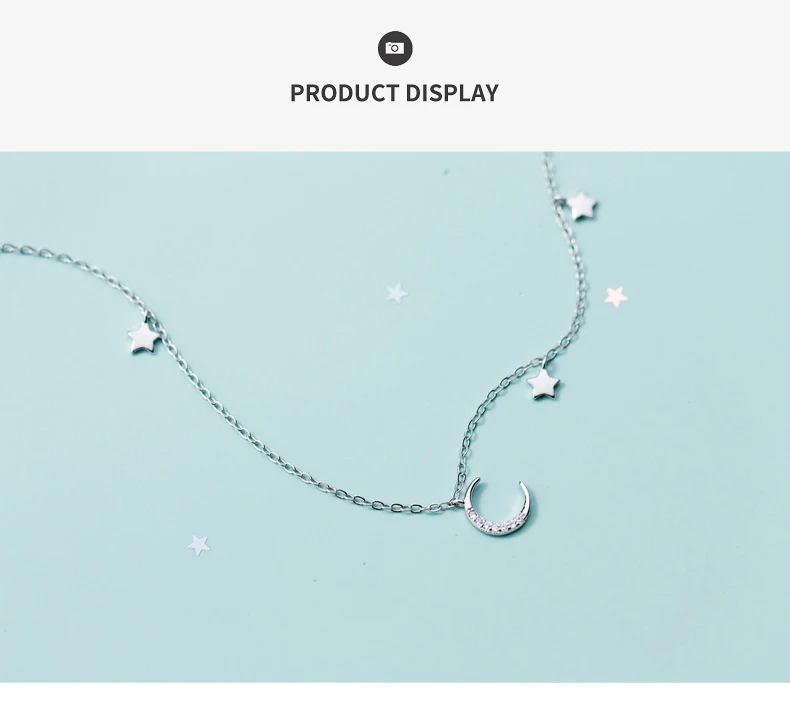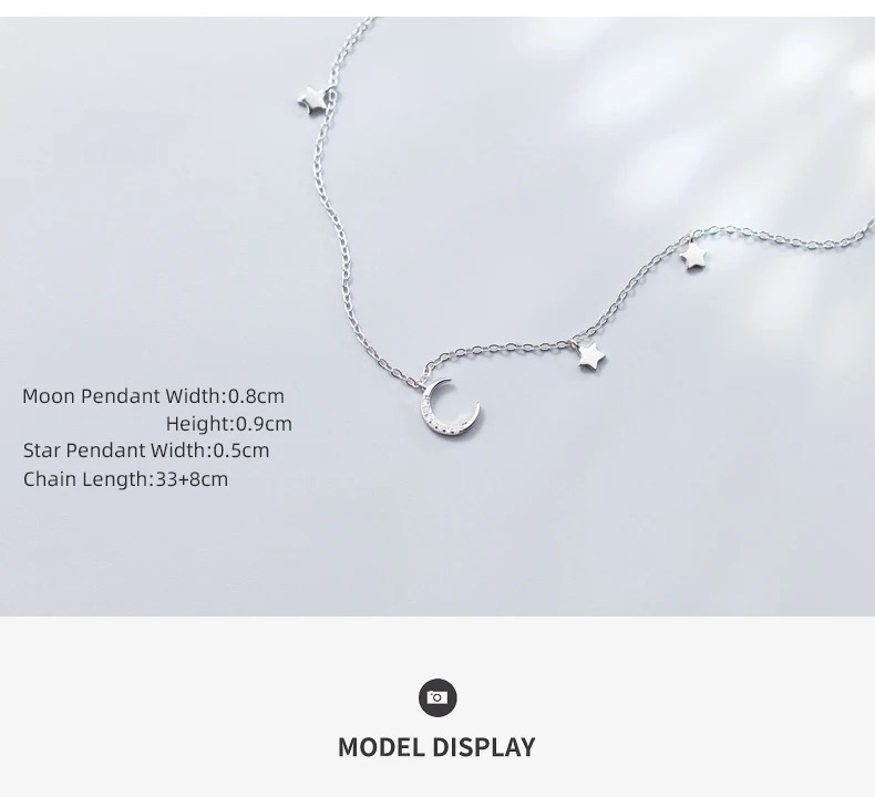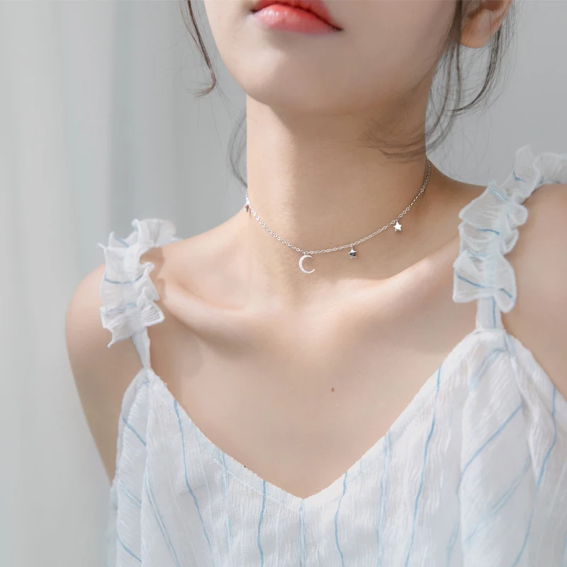 Real 925 Sterling Silver Choker Necklace Tiny Rose Gold Color Moon Star Charm Pendant cz Paved for Women Friends Engagement