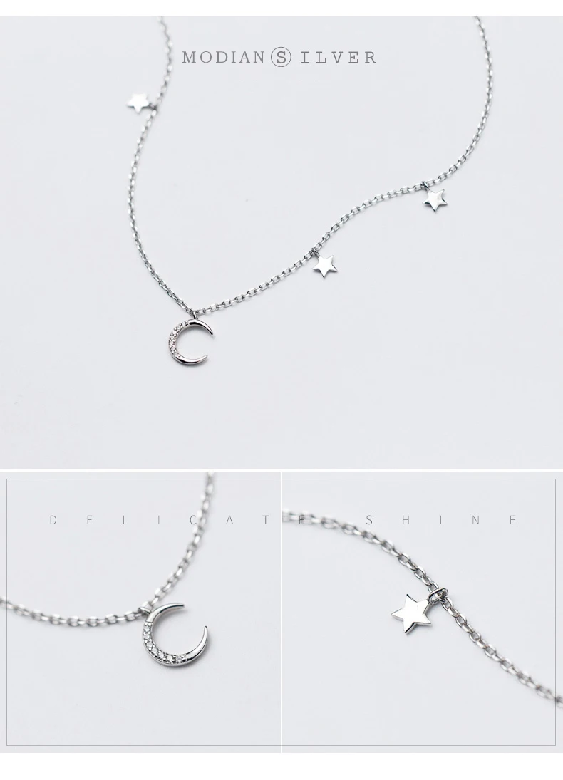 Modian Moon And Stars Fashion Charm Choker Pendants Necklace Classic Luxury 925 Sterling Silver Sparkling Jewelry For Women