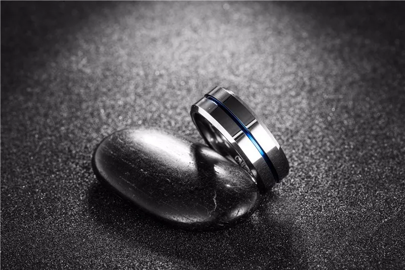 Modyle 2018 Fashion Thin Blue Line Tungsten Ring Wedding Brand 8MM Tungsten Carbide Rings for Men Jewelry