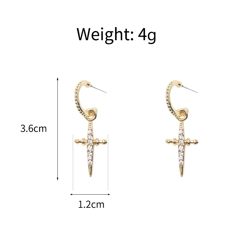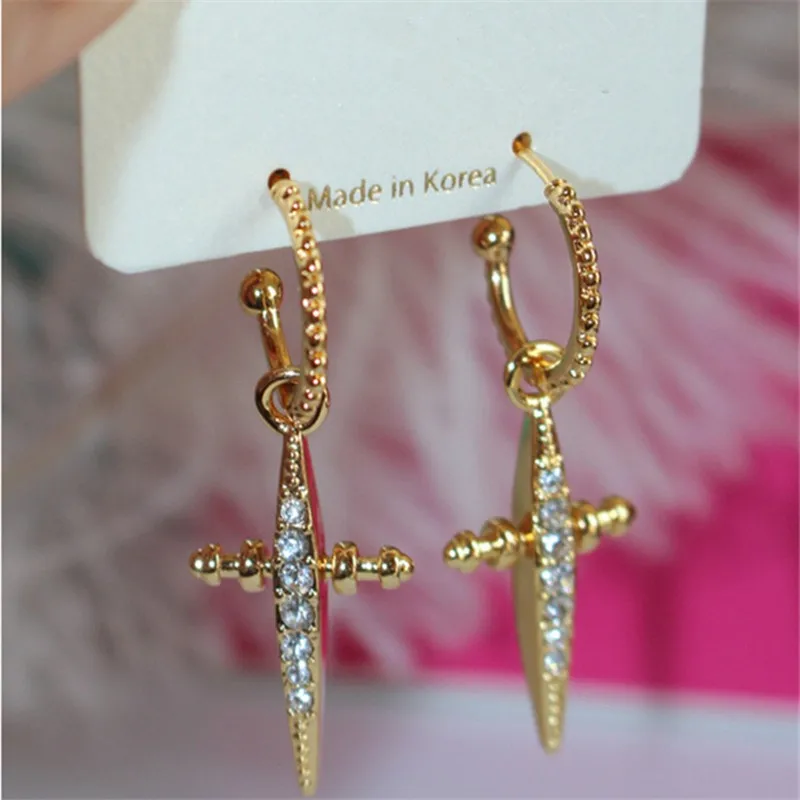 2019 New Korean Version Retro Cross Rhinestone Pendant Earrings Fashion Elegant for Women Earrings Jewelry Gifts