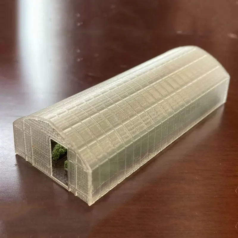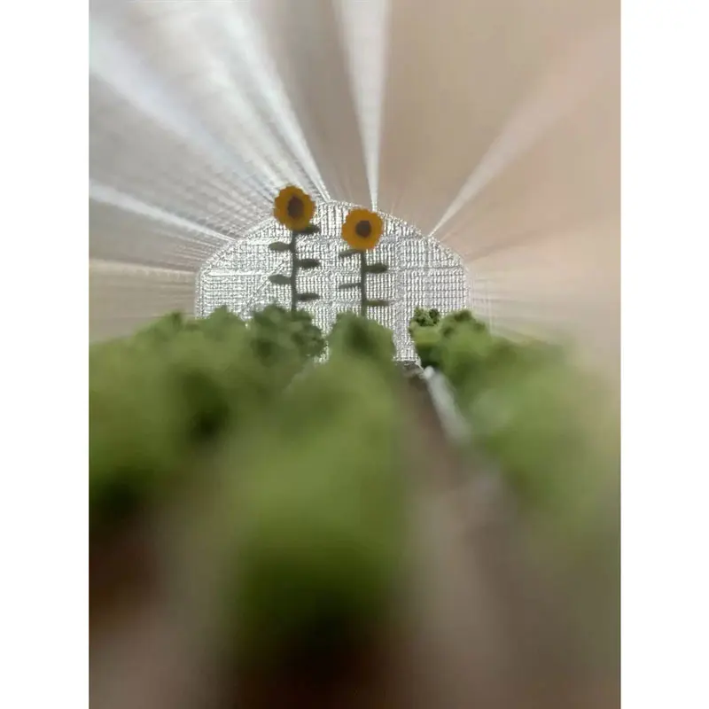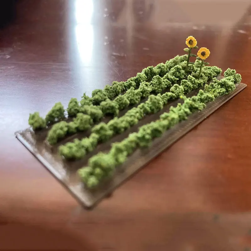 The greenhouses are made of plastic and the plants are made of resin. Beautifully painted, site measurement of actual size, and N scale processing. Suitable for N scale sand table landscape.