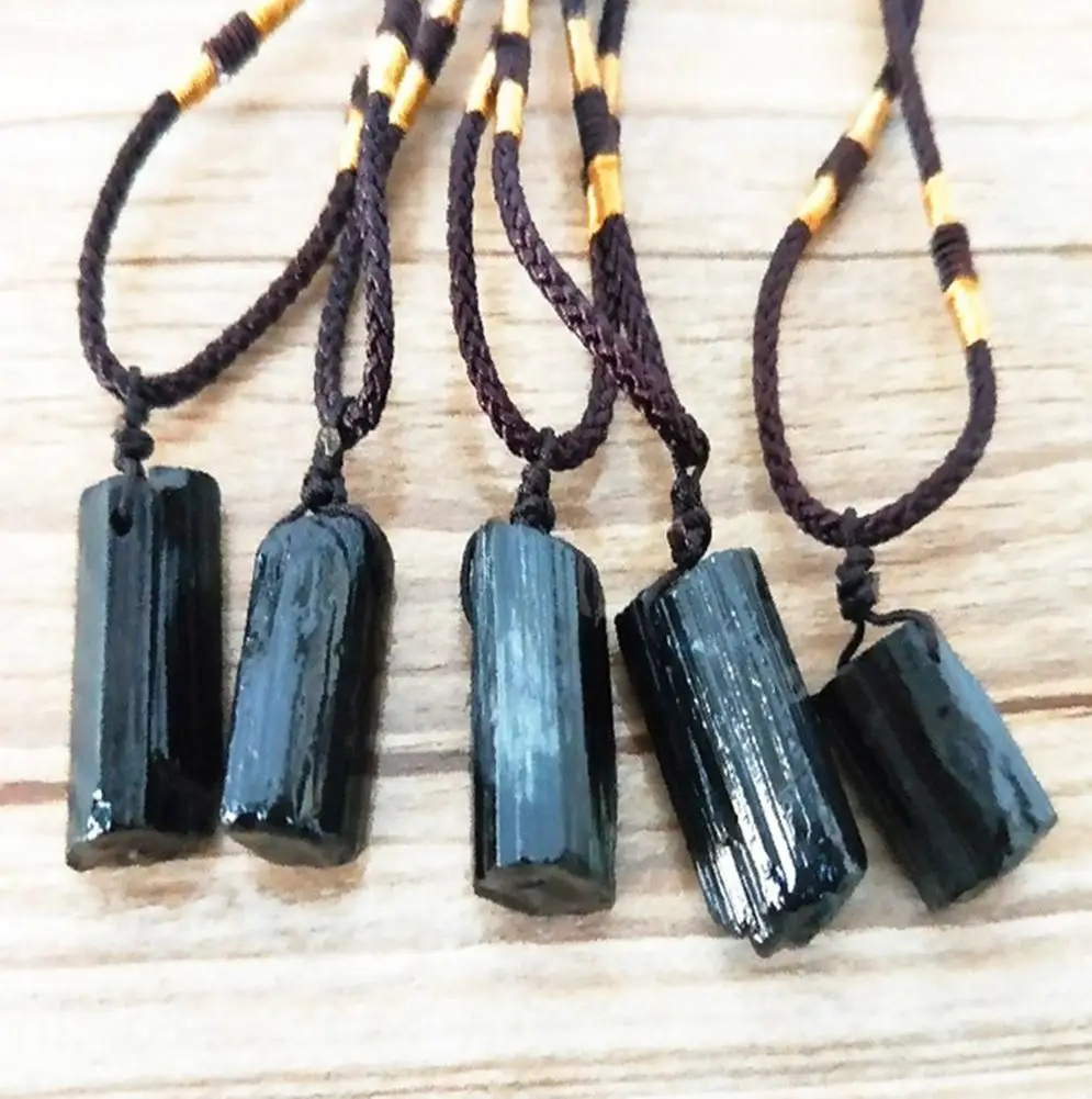 Natural Crystal Black Tourmaline Stone Pendant Necklace Wired Charm Stone Pendants