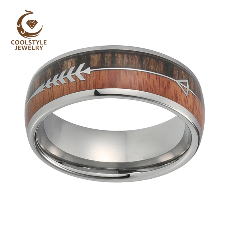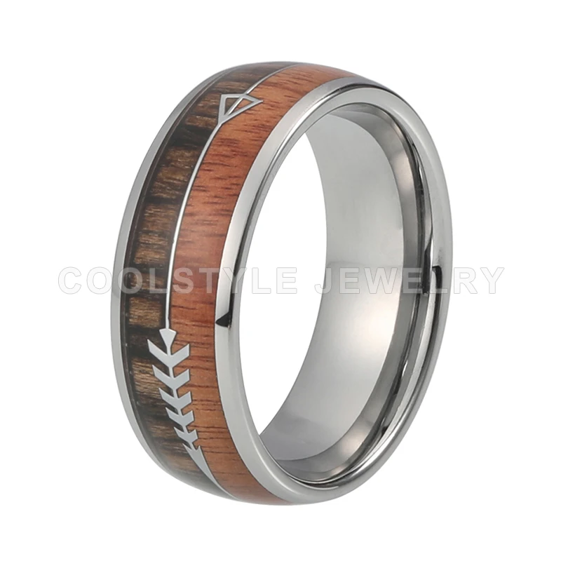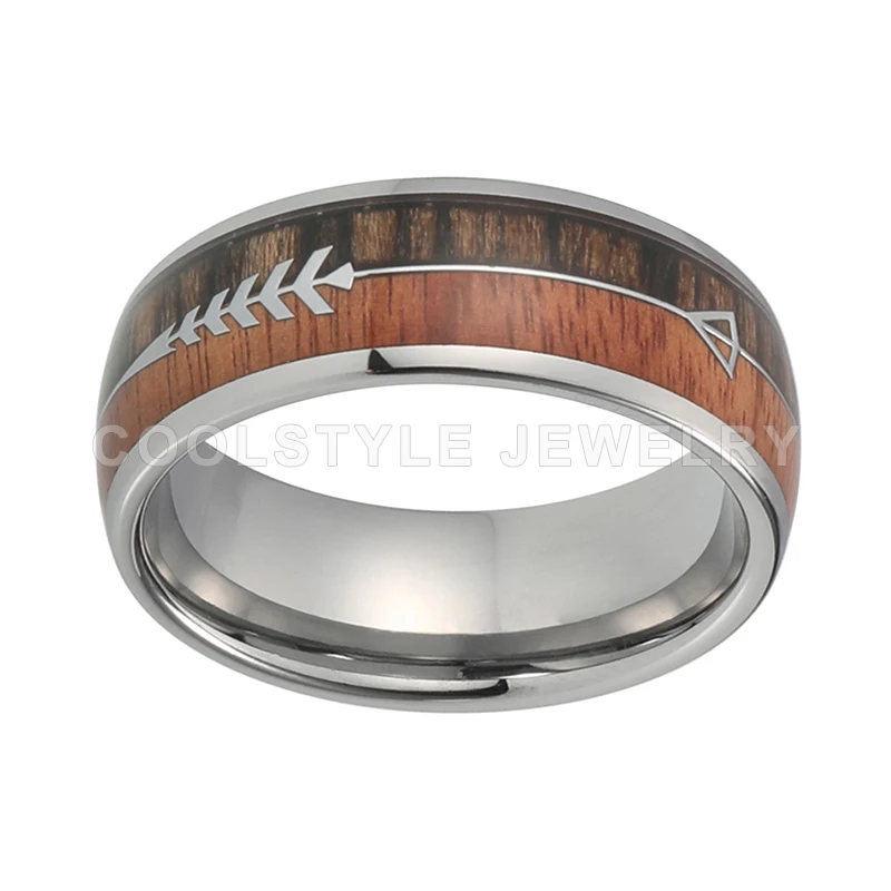 | Product Name | Natural Black Tungsten Dome Ring with Koa Wood And Feathered Arrow Wedding Band Comfort Fit |