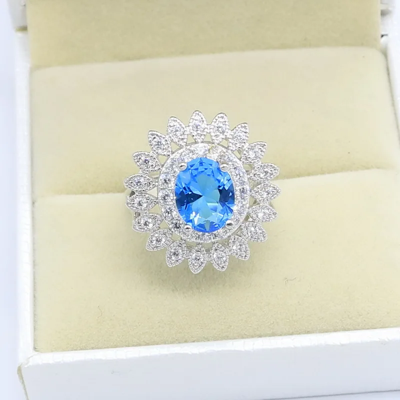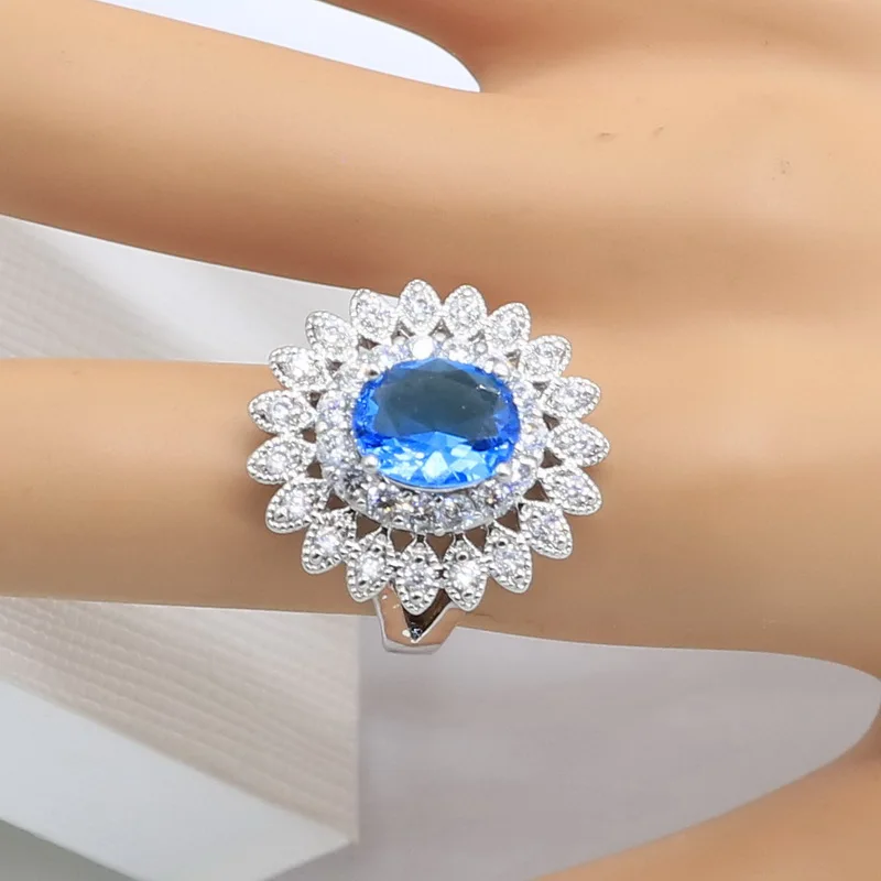 Natural Blue Zircon White Crystal Silver Color Jewelry Sets For Women Party Earrings/Pendant/Necklace/Rings/Bracelet