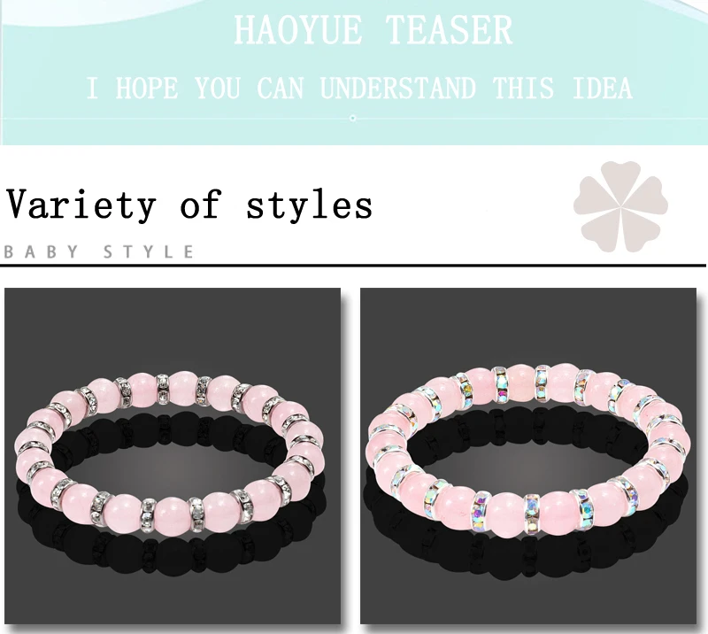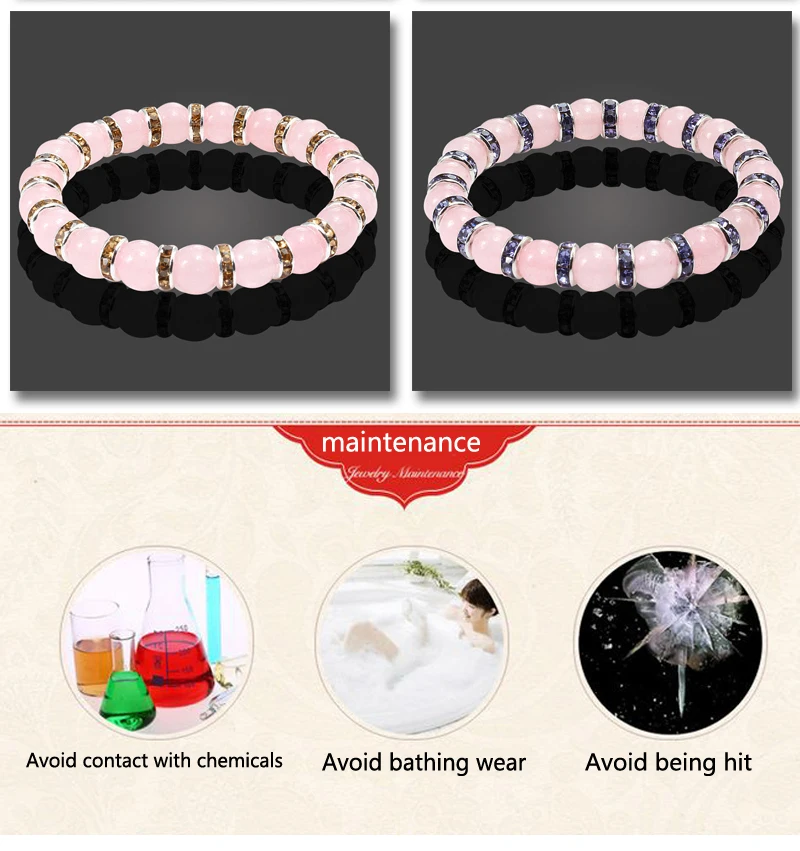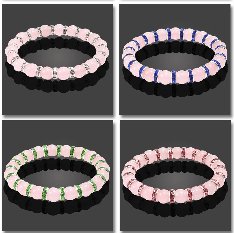 Natural Stone Pink Crystal Quartz Bracelets & Bangles For Women Men Casual Jewelry Charm