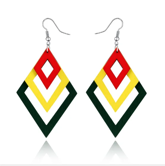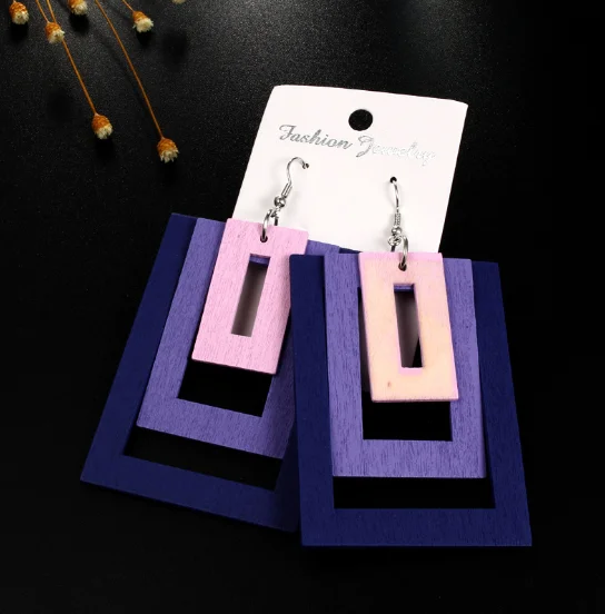 3D Fashion Hollow Carving wood Peach Heart Drop Earrings