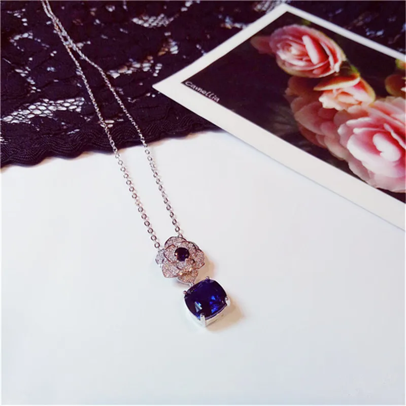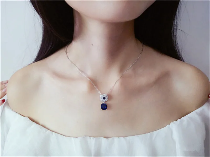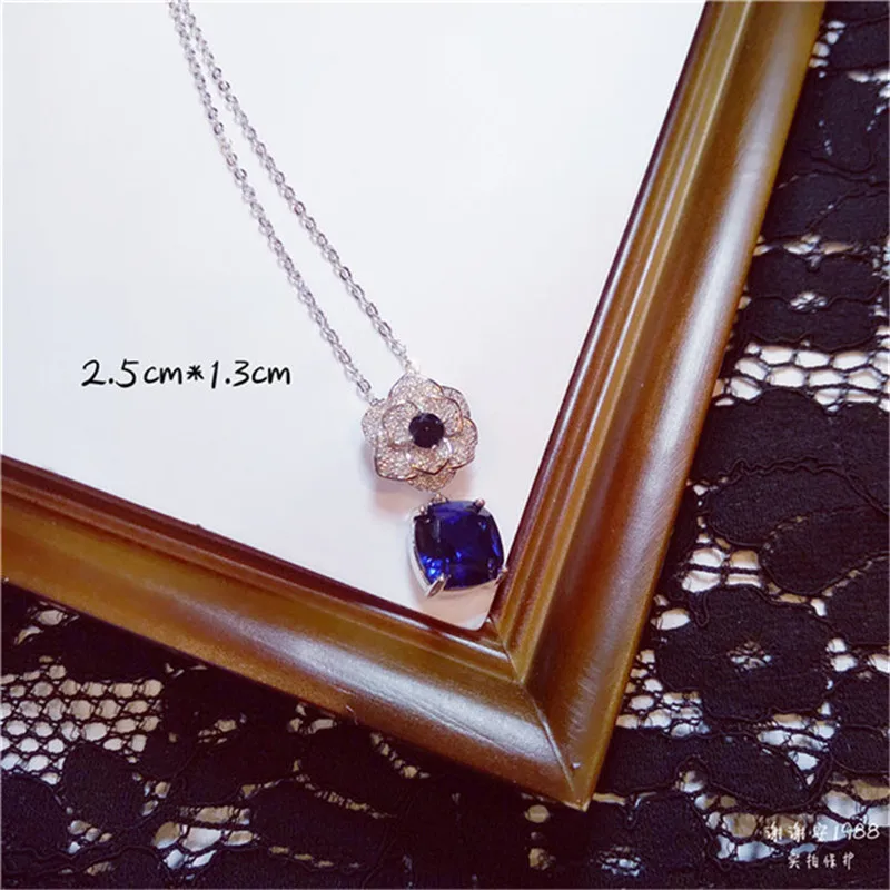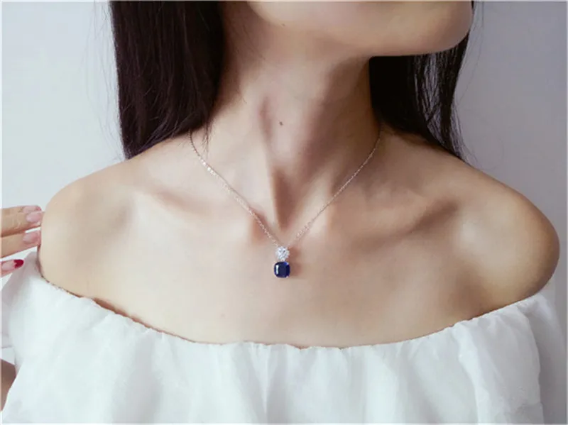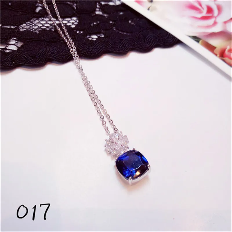 CC Necklaces Pendants For Women 925 Sterling Silver Cubic Zirconia Square Pink/Yellow Stone Fashion Jewelry No Chain CCN257