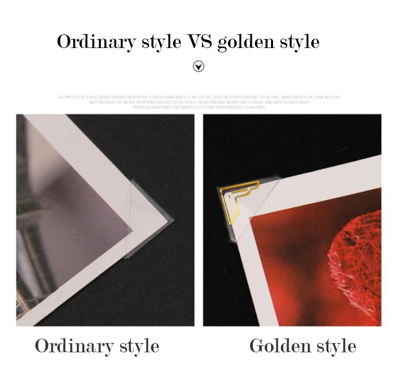New 8 Sheets Paper Corner Stickers PVC Transparent Gold For Photo Albums Frame Decoration Scrapbooking Album Sticker Accessories
