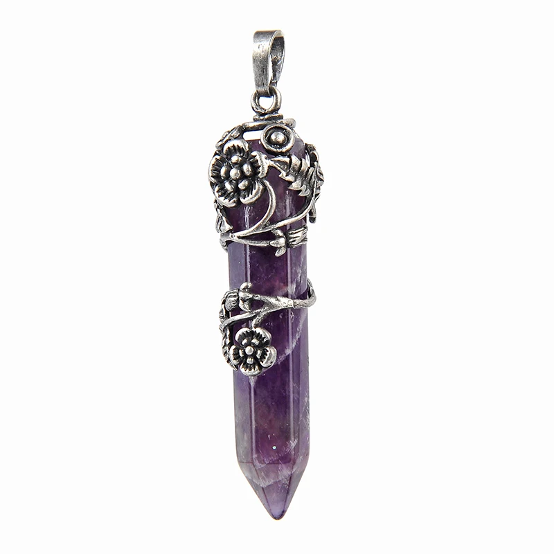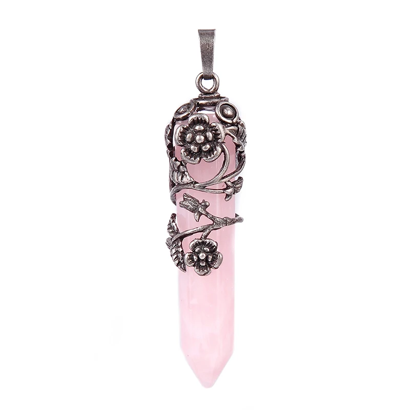 New Antique Flower Wire Wrap Geometry Pink Quartz Natural Stone Pendant for Necklace Choker Wholesale Retail Diy Jewelry