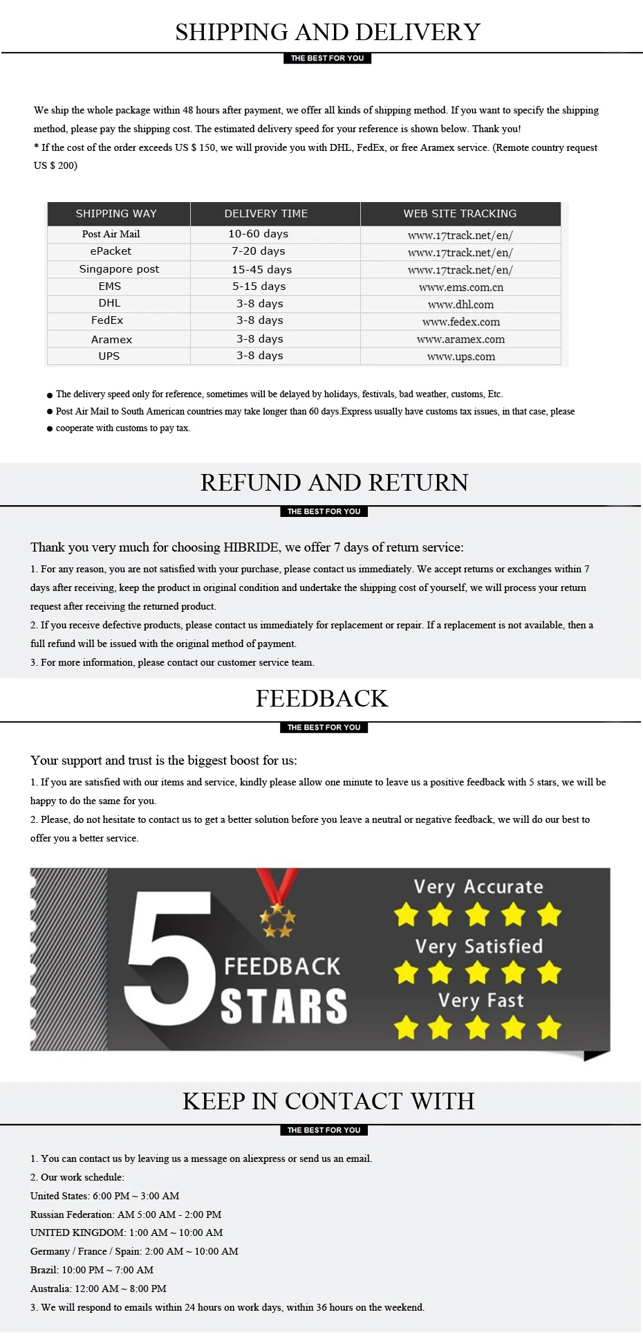 | Fast shipping | free shipping when total $220 |
