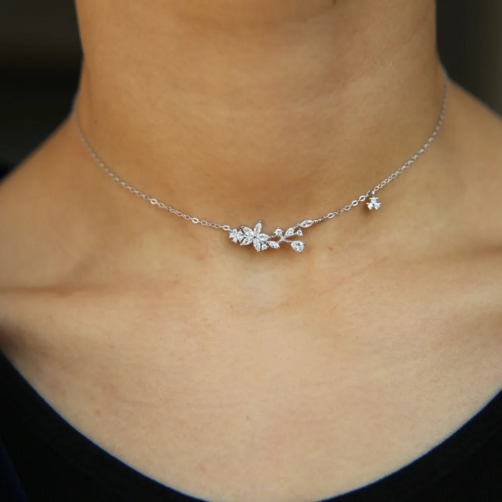 100% 925 sterling silver choker necklace Cubic Zirconia AAA drop star charm statement fine silver fashion evening party jewelry