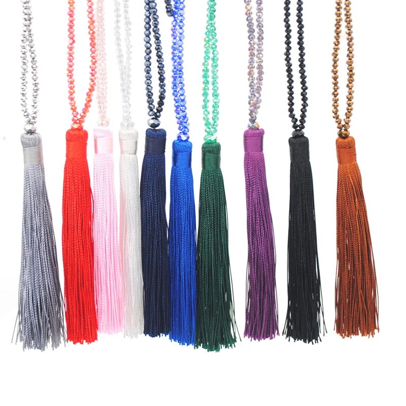 New Fashion Boho Long Fringe Tassel Necklaces Women Collier Glass Beads Crystal Statement Collar Bohemian Jewelry Gifts