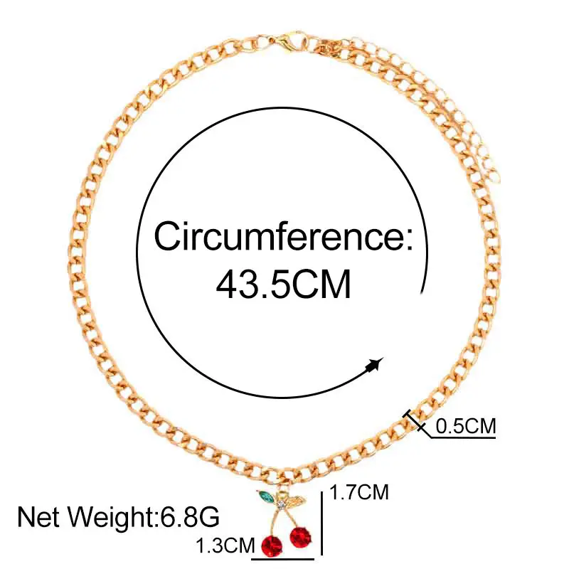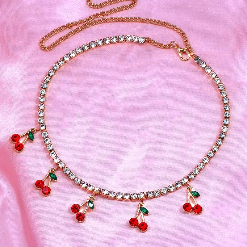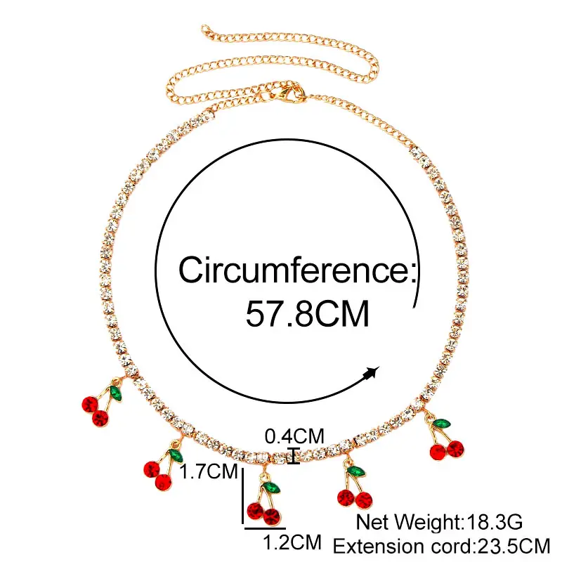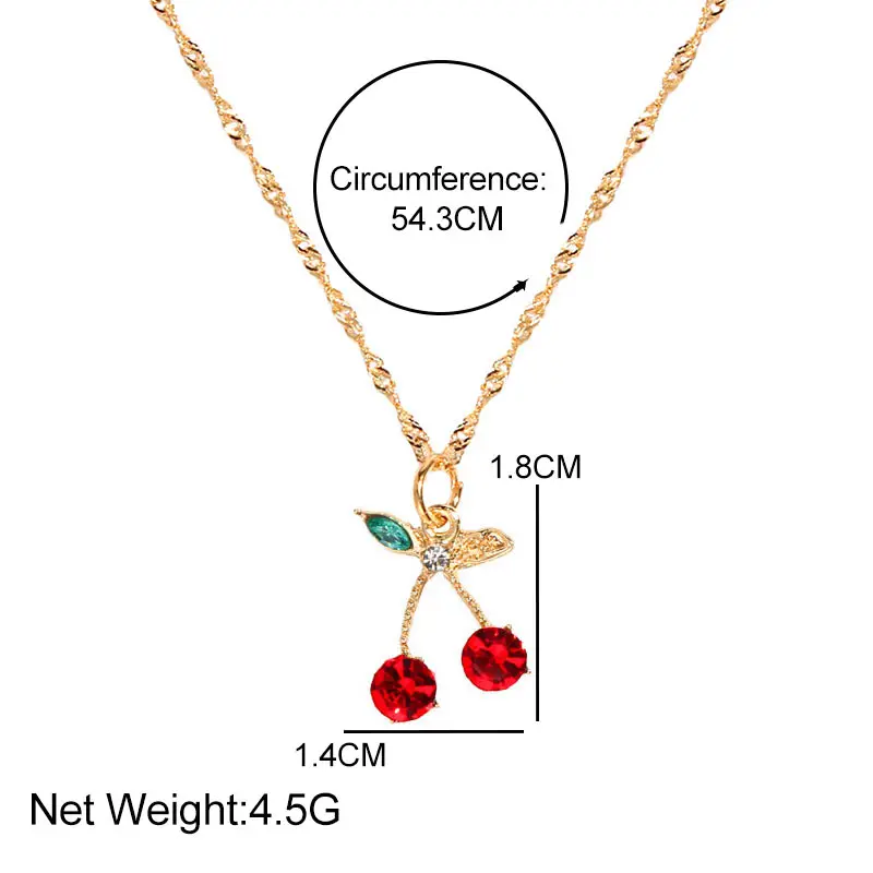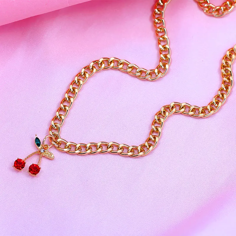New Korean Fashion Red Cherry Crystal Pendant Necklace for Women Bling Rhinestone Tennis Chain Necklace Luxury Jewelry Gift