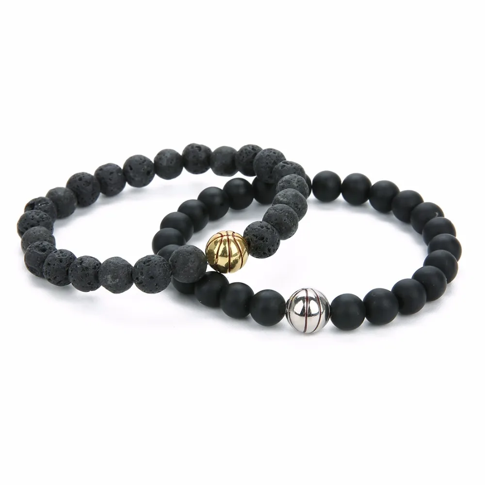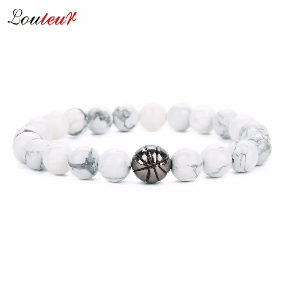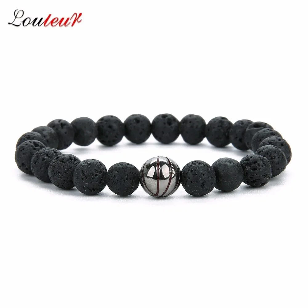 New Lava Stone Basketball Charms Bracelet Sports Basketball Beads Bracelet Baseball Charm Bracelets for Women Christmas Gift