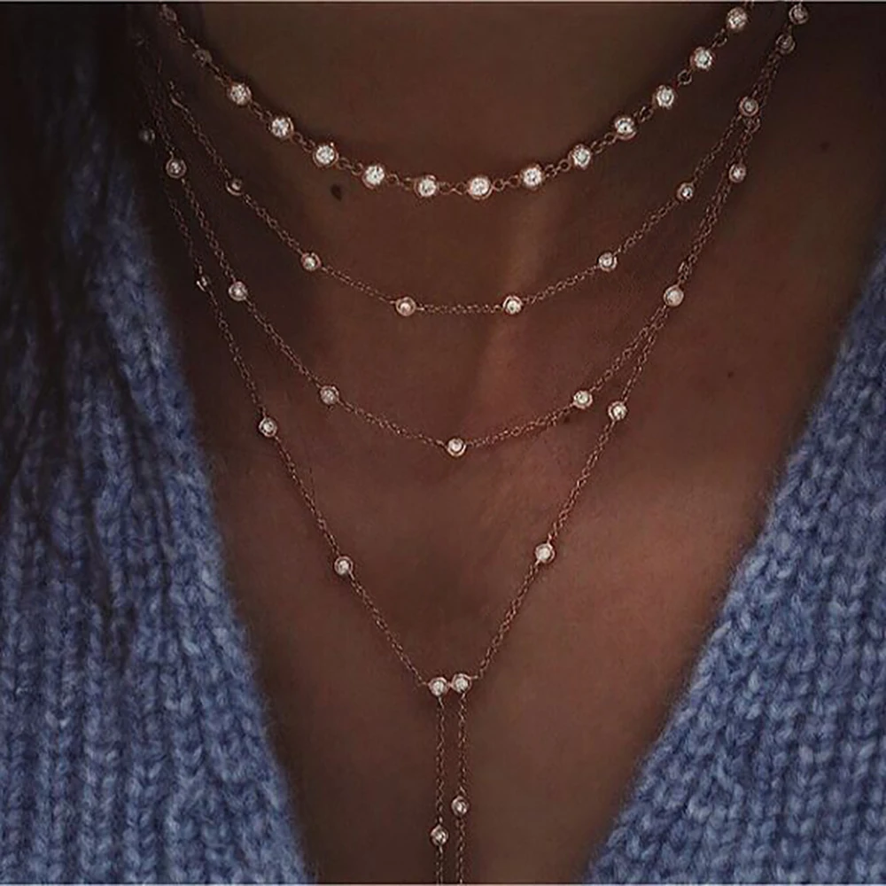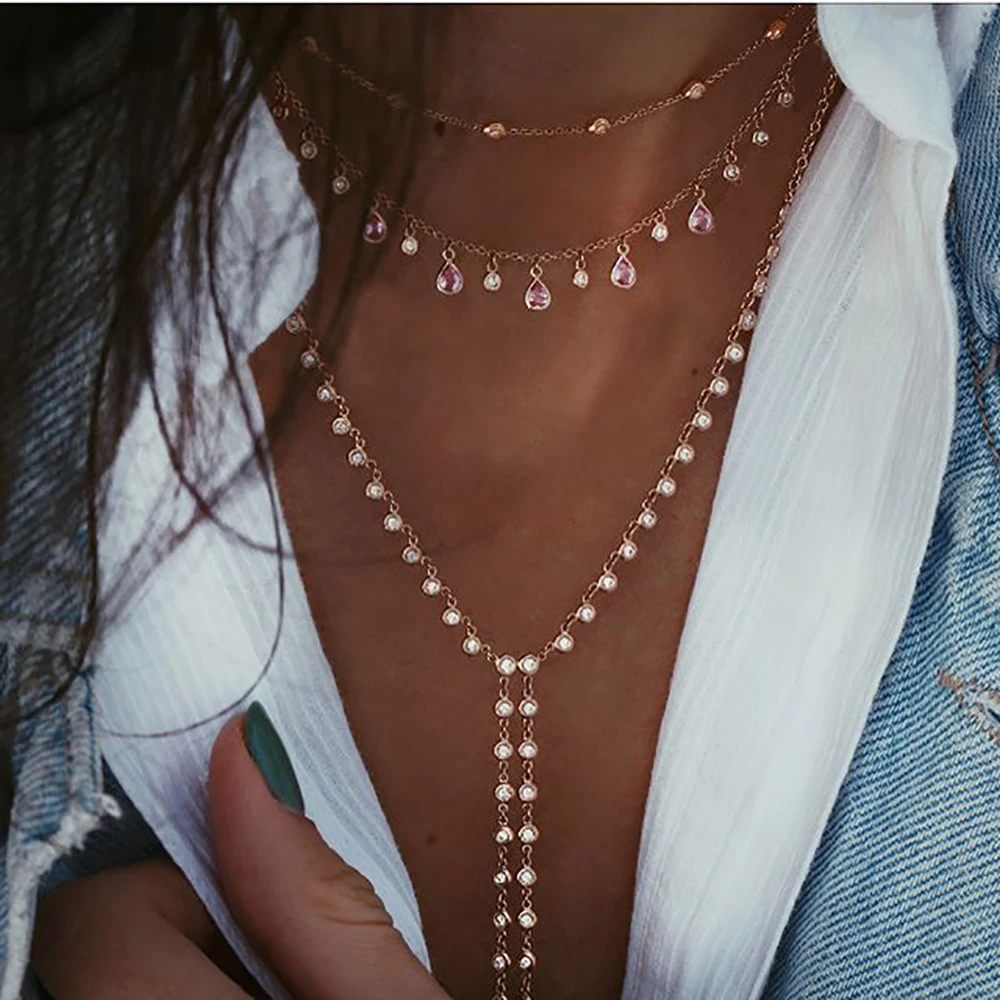 | Necklace Women | Long Necklace Female Cross Multilayer Bead Necklace |
