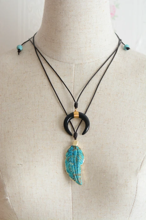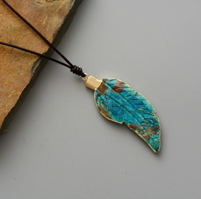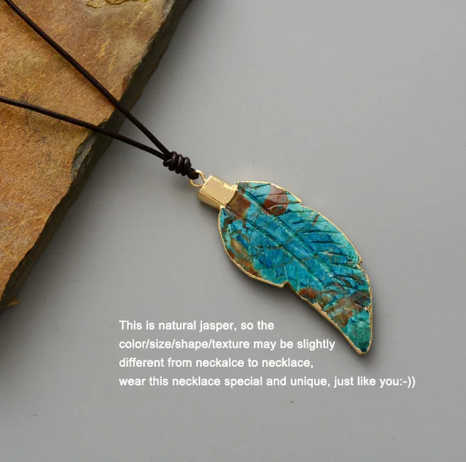 Be the first to review “New Womem Necklaces Jewelry Natural Stone Gilded Leaf Leather Cord Pendant Necklace Fashion Necklace Homme Dropshipping”