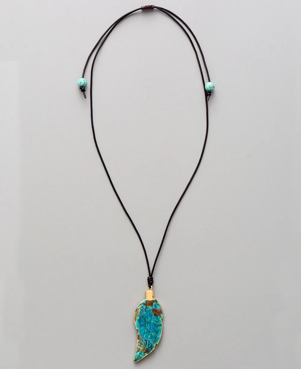 New Womem Necklaces Jewelry Natural Stone Gilded Leaf Leather Cord Pendant Necklace Fashion Necklace Homme Dropshipping