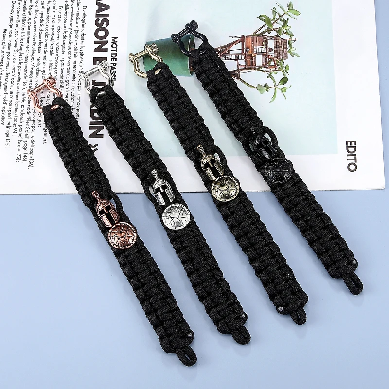 Nordic Outdoor Spartan Warrior Helmet Lanyard Bracelets Men Antique Vikings Accessories Survival Paracord Bangles homme Handmade