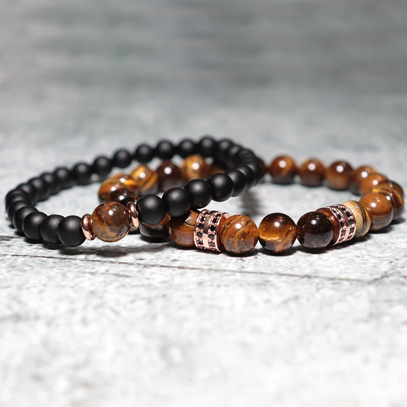 Noter 2pcs/pair Mens Bracelet Natural Tiger eye Beads Braslet Luxury Zirconia Strand Brazalete Male Accessories Boyfriend Gift