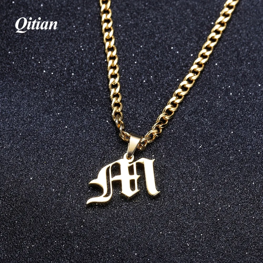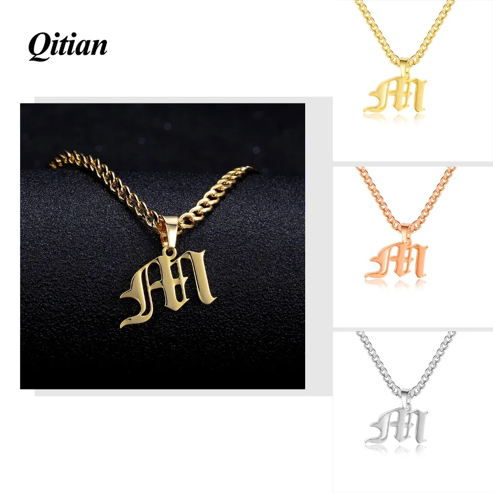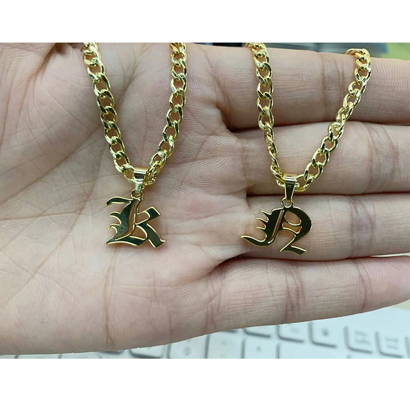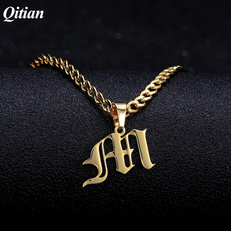 Initial A-Z Alphabet Capital Letter Pendant Necklace for Men Women Stainless Steel Box link Chain Ddropshipping US Stock GPM05A