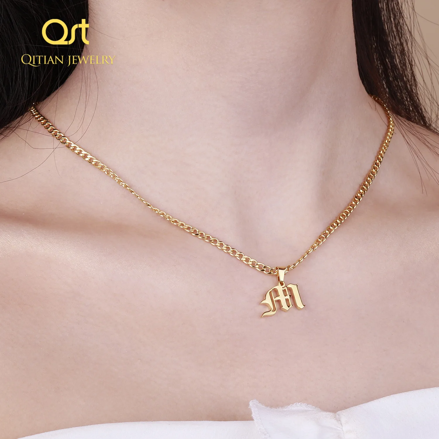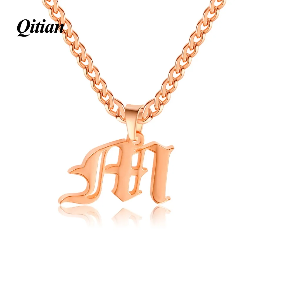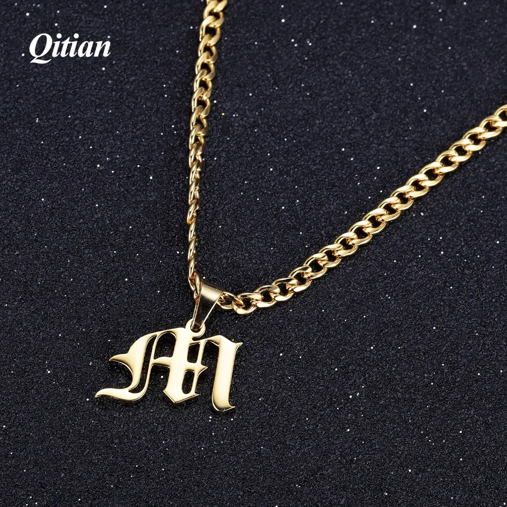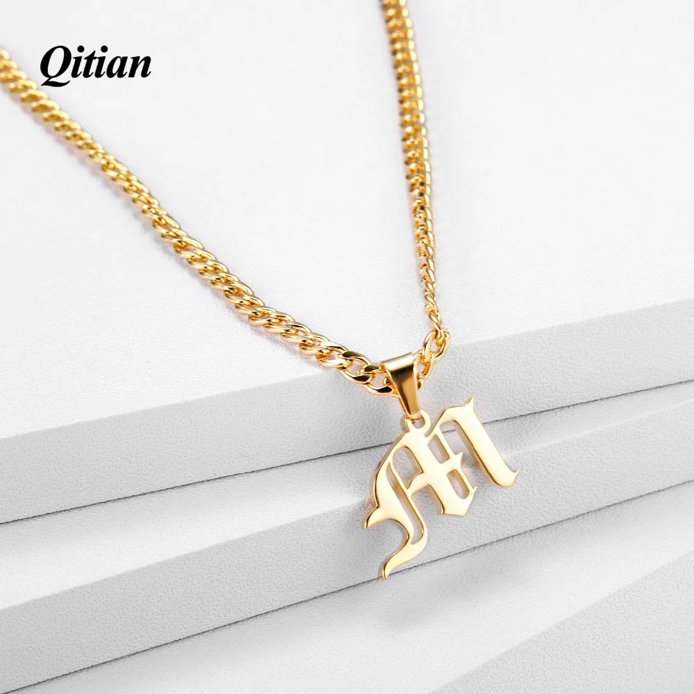 Initial A-Z Alphabet Capital Letter Pendant Necklace for Men Women Stainless Steel Box link Chain Ddropshipping US Stock GPM05A