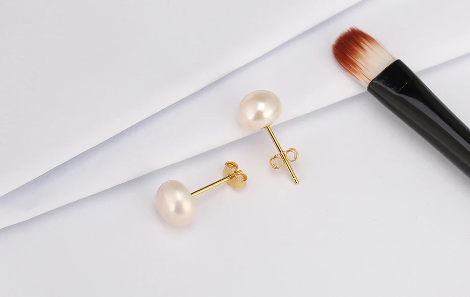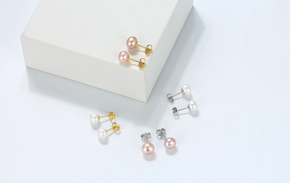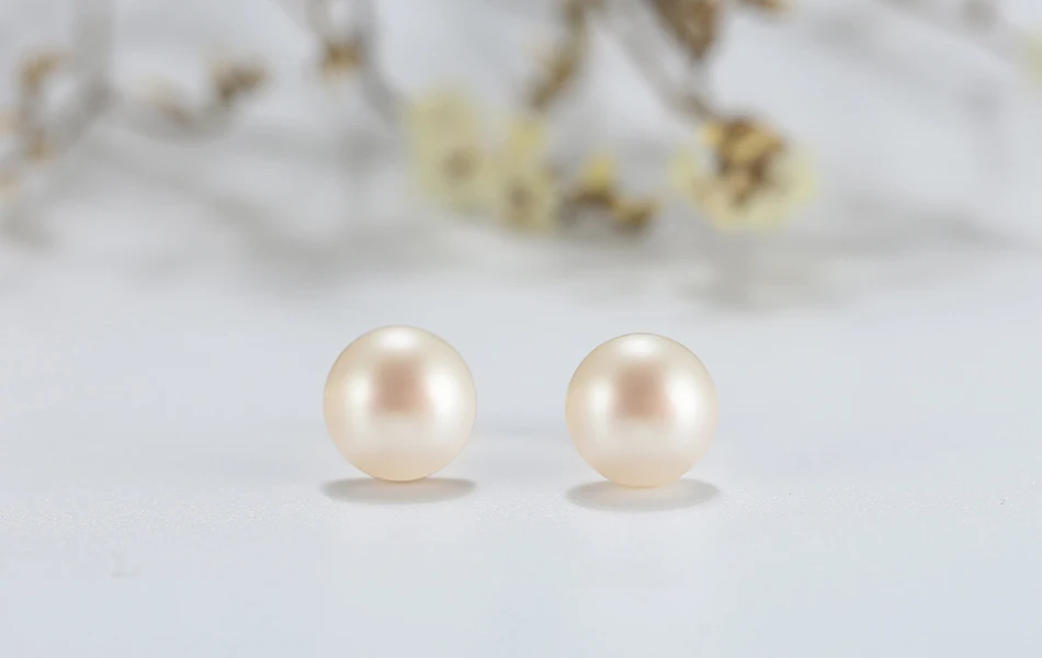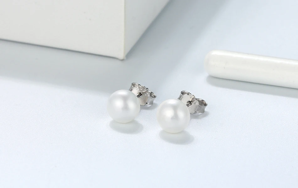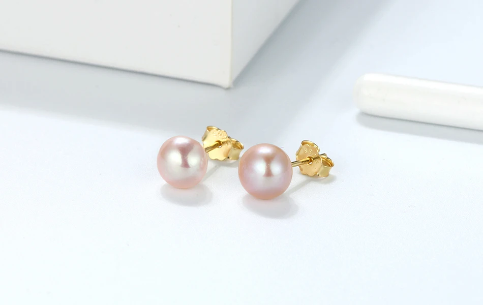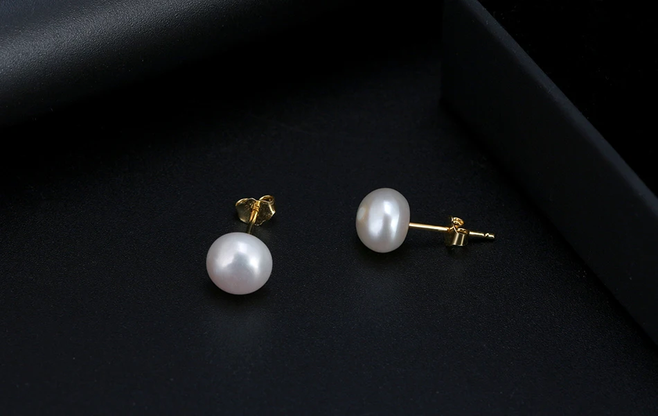 ORSA JEWELS Real 925 Sterling Silver Stud Earrings For Women Genuine Fresh Water Pearl 8 MM Gold-color Female Party Jewelry SE86