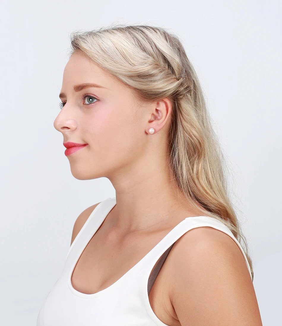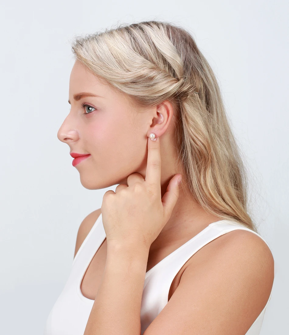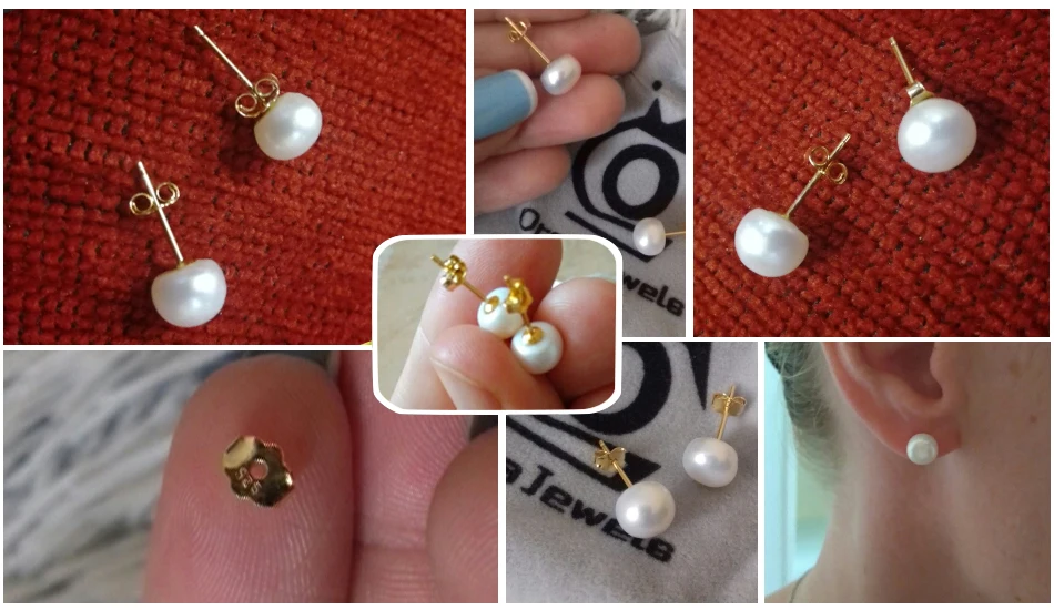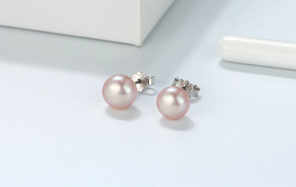 ORSA JEWELS Real 925 Sterling Silver Stud Earrings For Women Genuine Fresh Water Pearl 8 MM Gold-color Female Party Jewelry SE86