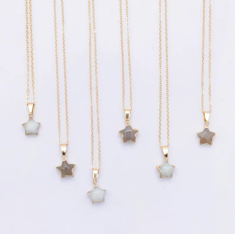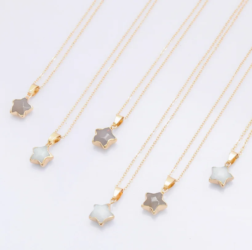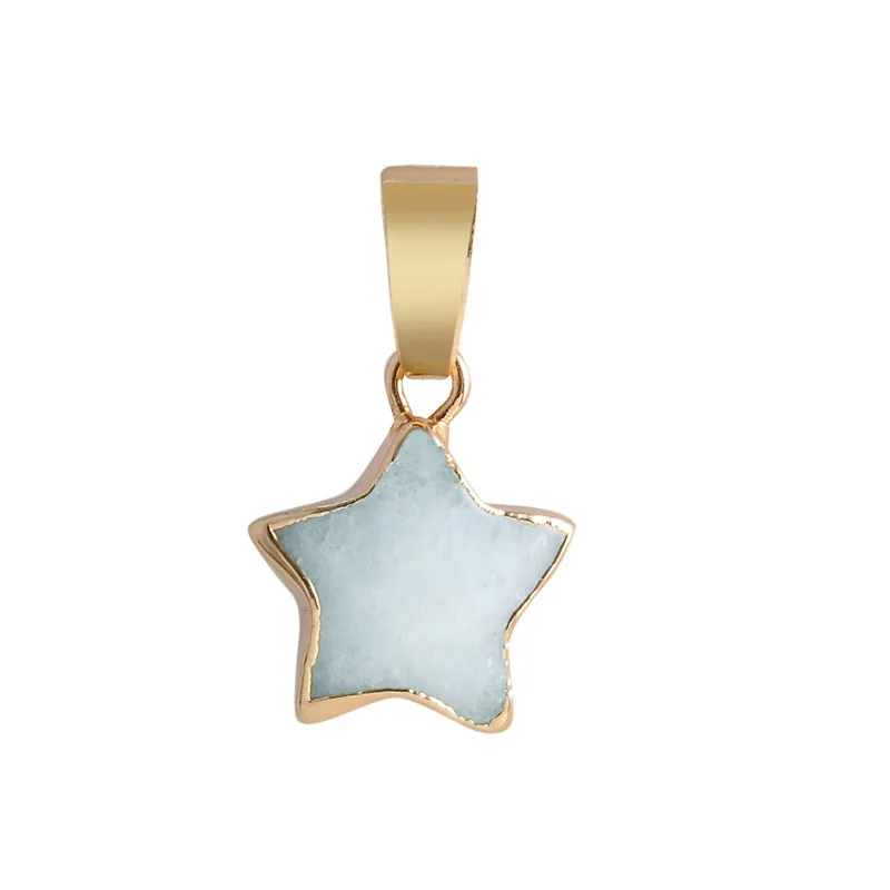 Pentagram star pink Crystal Druzy Chakra Nature Stone Gold Plating Geode Druzy Quartz Pendant DIY Gold Chain Necklace 50cm