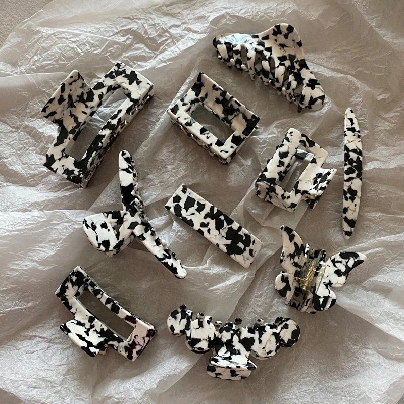 | Feature | 8 Designs Milk Cow Hair Clamps Black White Acetate Acrylic Hair Clip |