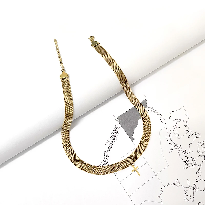 Feature: Weaved Wide Chain Cross Necklaces ,Textured Titanium Steel Choker Necklaces,Vintage Necklace 2020 Trendy