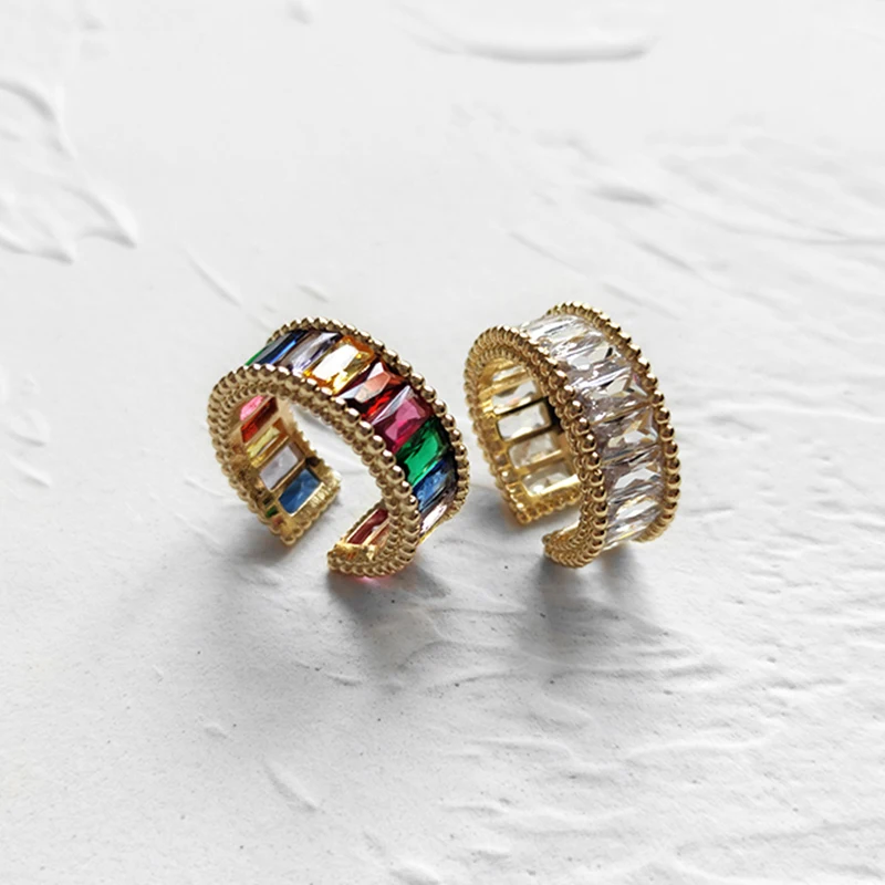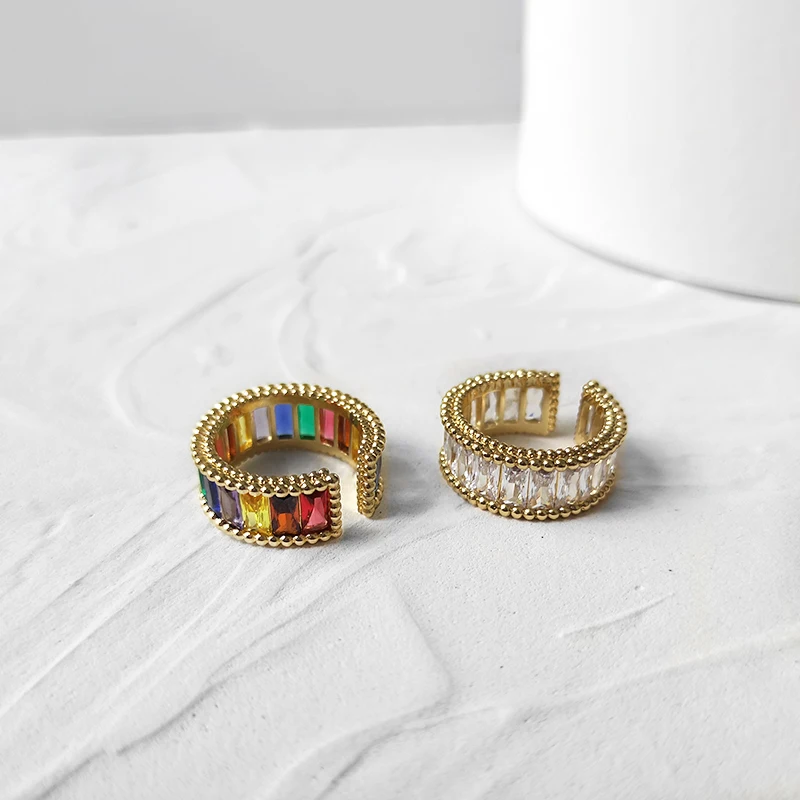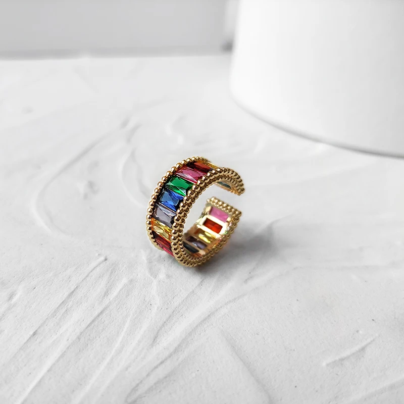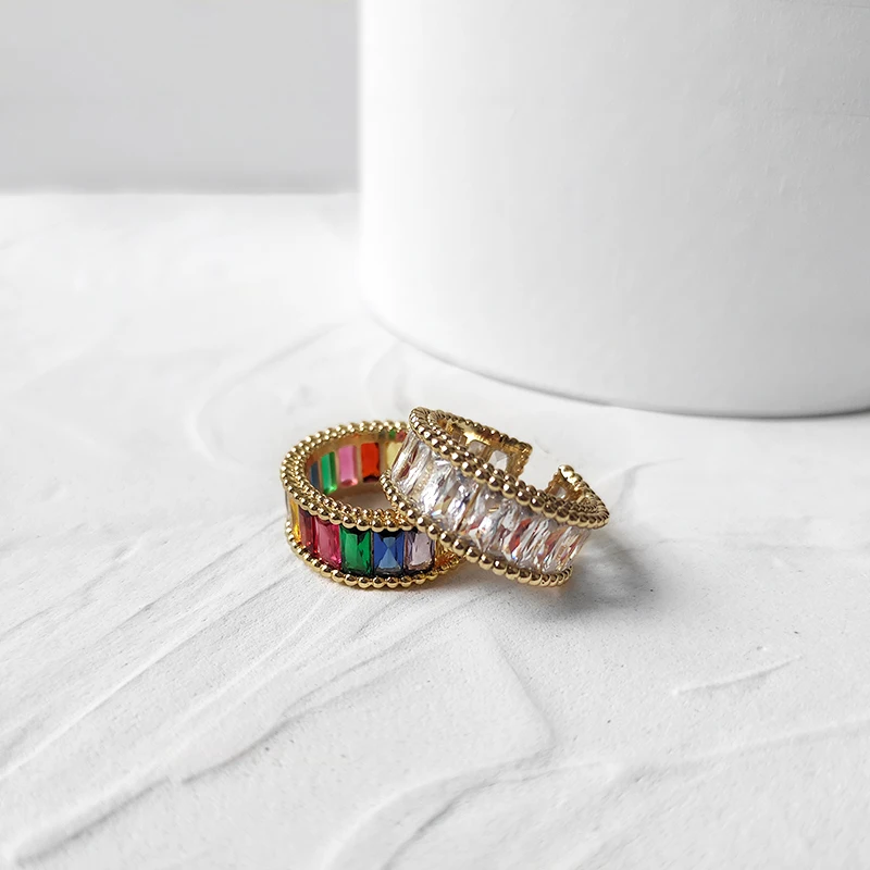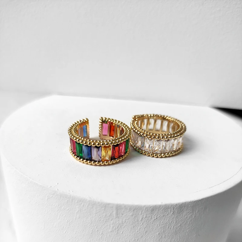 | Feature | Wide Rectangle Rainbow Zircon Rings |
