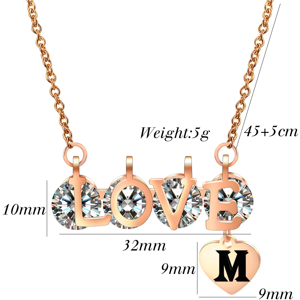 Personalized A To Z 26 Letters Initial Necklaces For Women Stainless Steel Custom Jewelry Alphabet Necklace With Heart Pendant