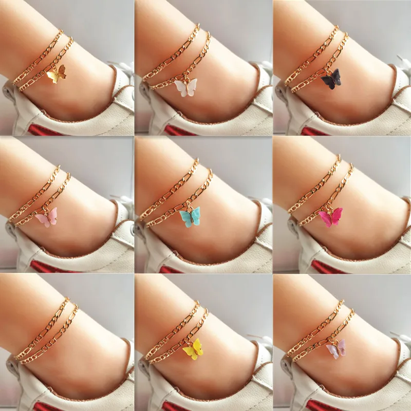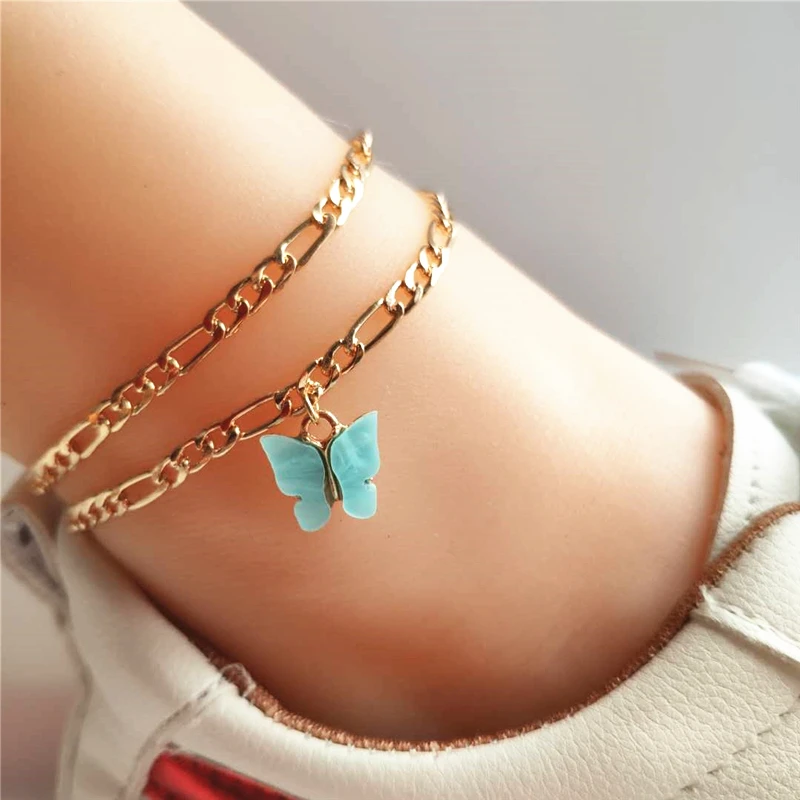 PZMYCS Fashion Cute Butterfly Anklets for Women Gold Silver Color Chain Ankle Bracelet on The Leg 2020 Bohemian Foot Jewelry