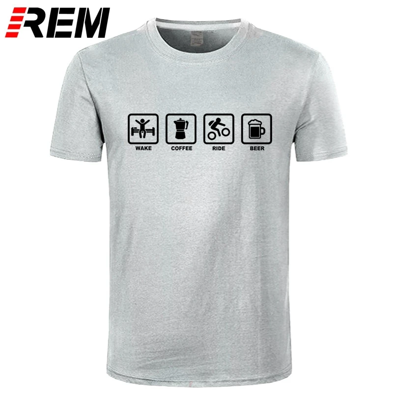 REM Brand Clothing Wake Coffee Rider Beer Bicycle Funny T Shirt Tshirt Men Cotton Short Sleeve T-shirt Top Camiseta