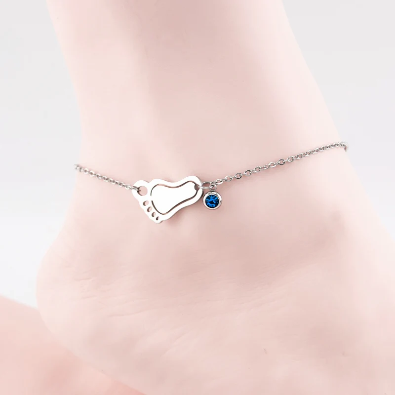 Risul Foot anklets birth/luckyStone 12pcs/lot mixed Stainless steel both sides mirror polished Rolo anklet chain (Jan-Dec. 1pc)