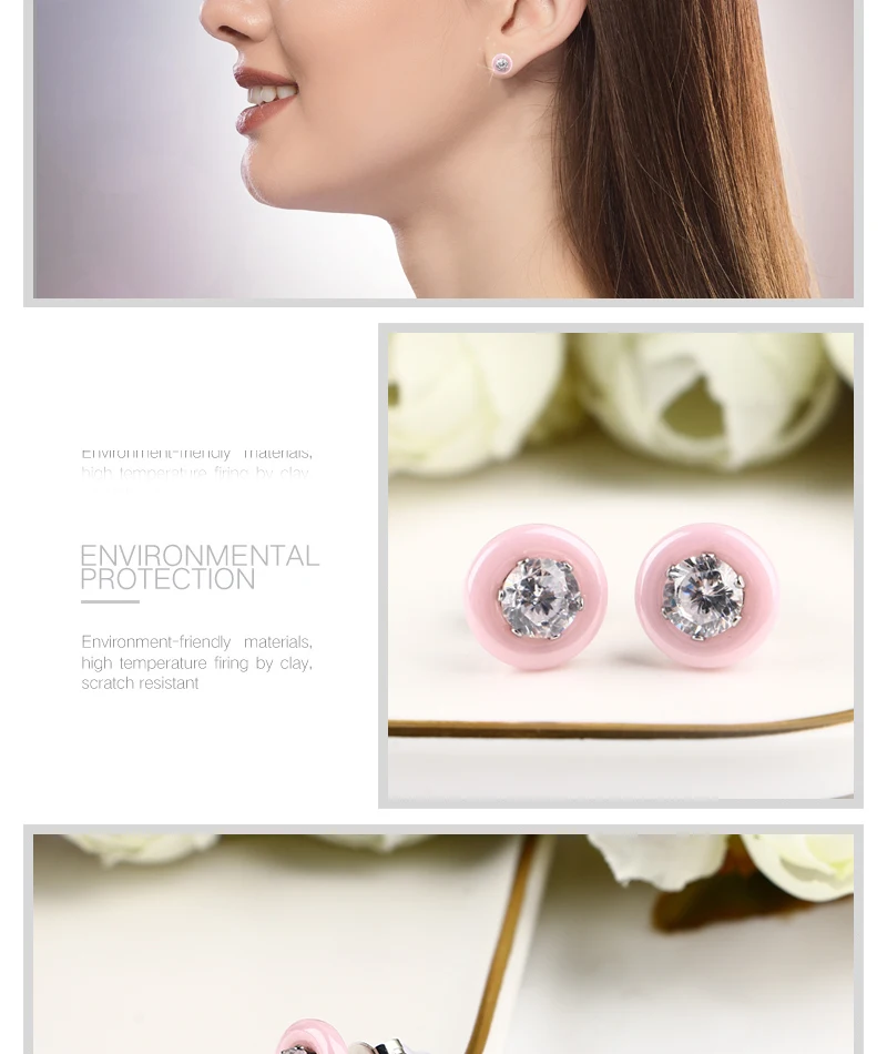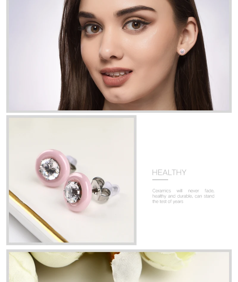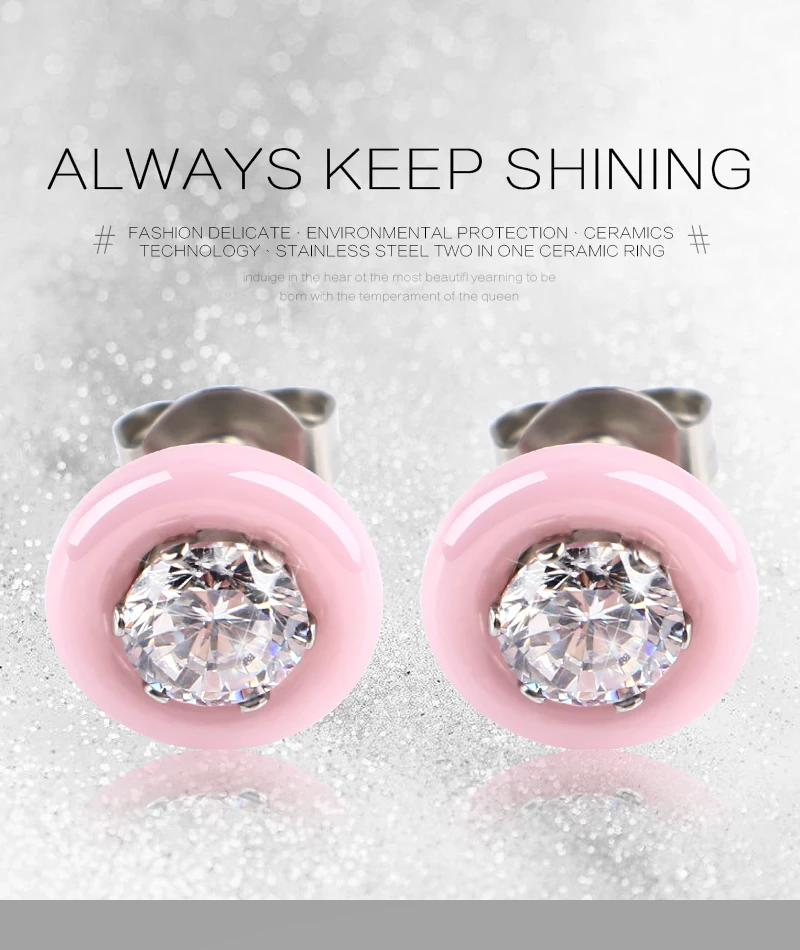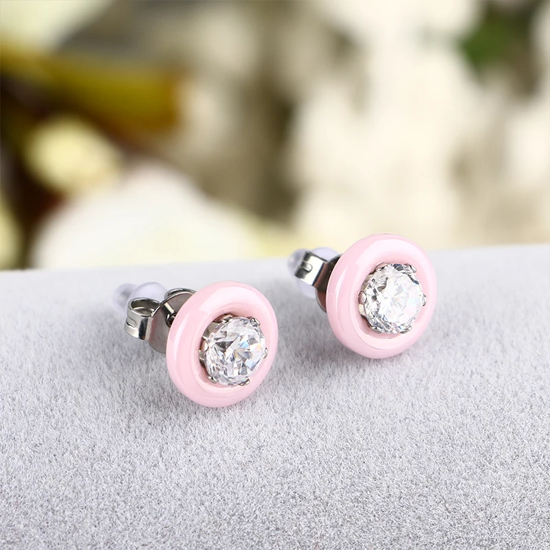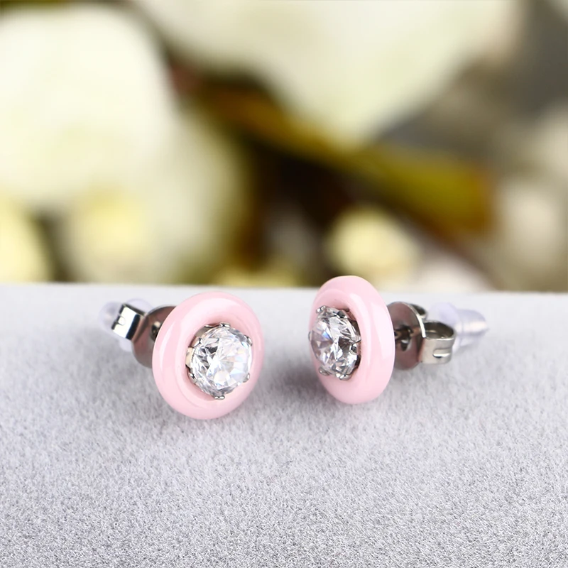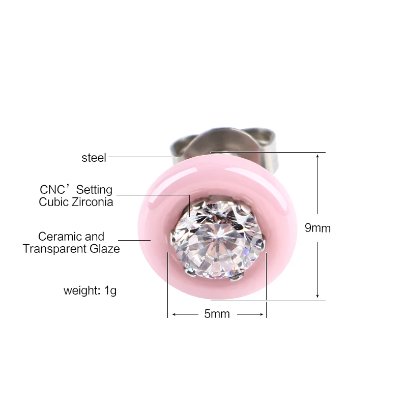 - Color:Pink Black White Round Ceramic Stud Earrings For Womeng