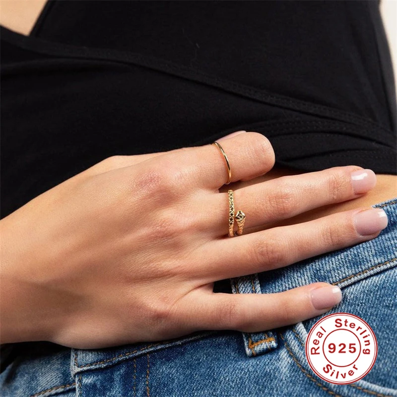 ROXI Brand Fashion Jewelry Rings For Women S925 Sterling Silver Cold Wind Personality Opening Ring Creative Snake Ring